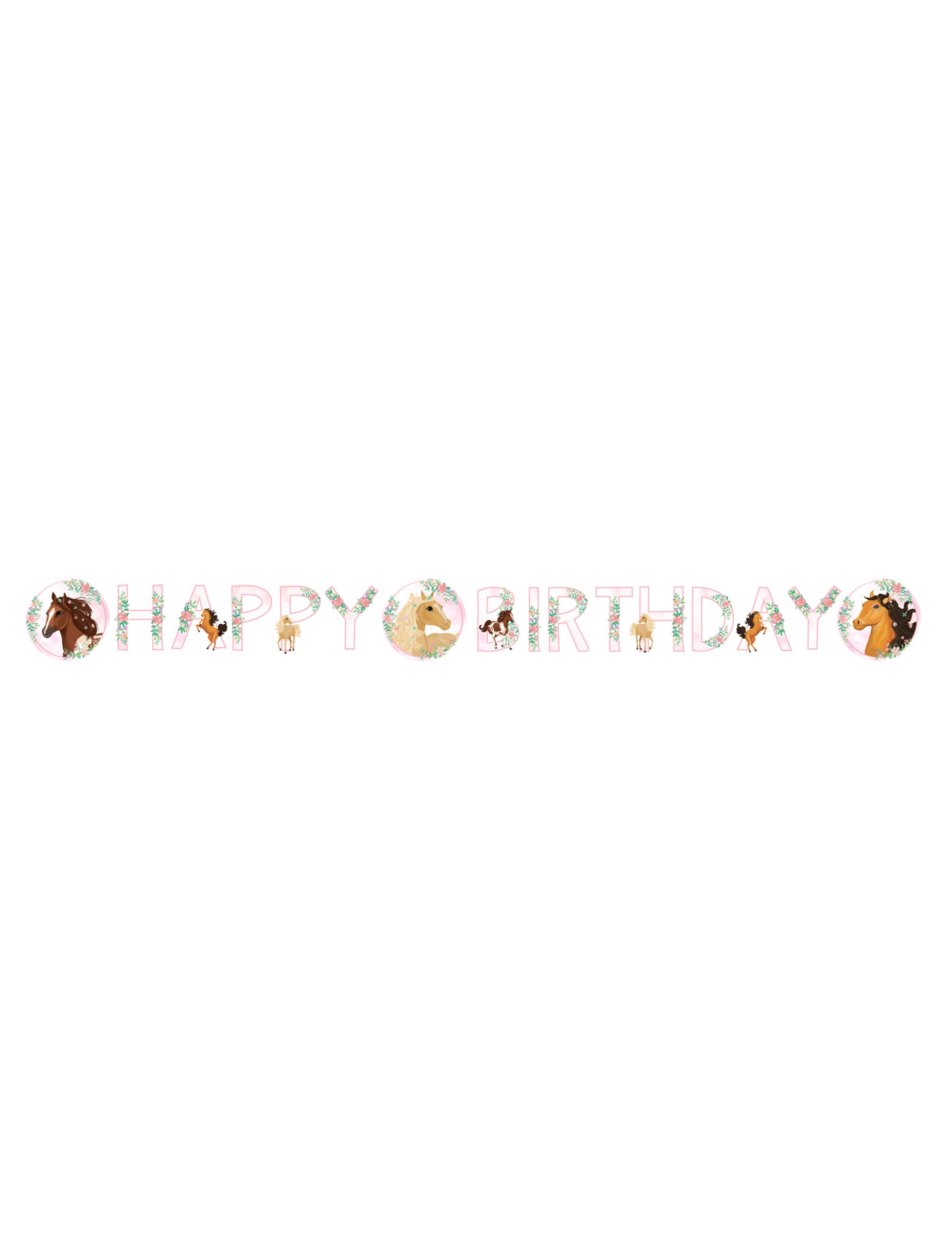 Guirlande happy birthday joli cheval 140 x 15 cm en carton