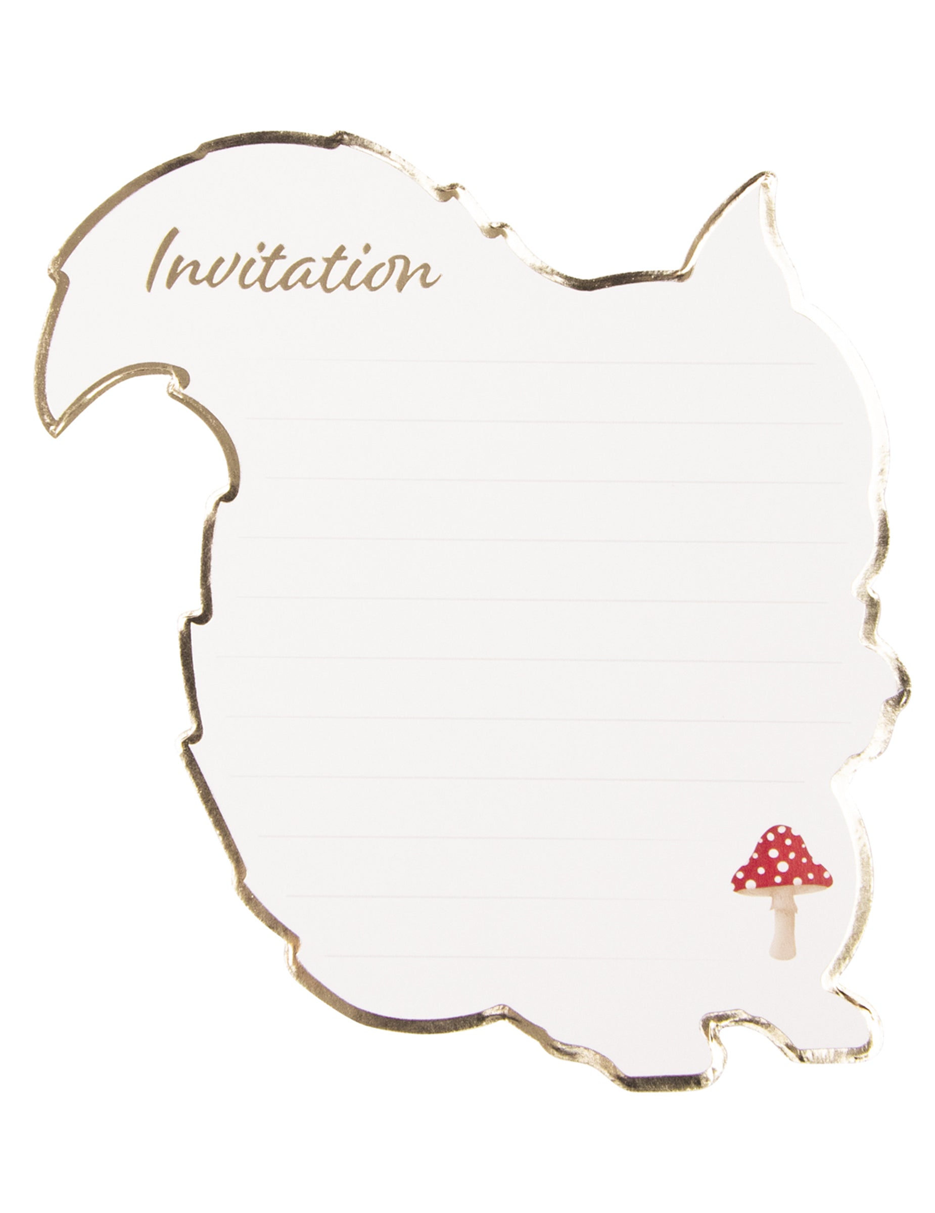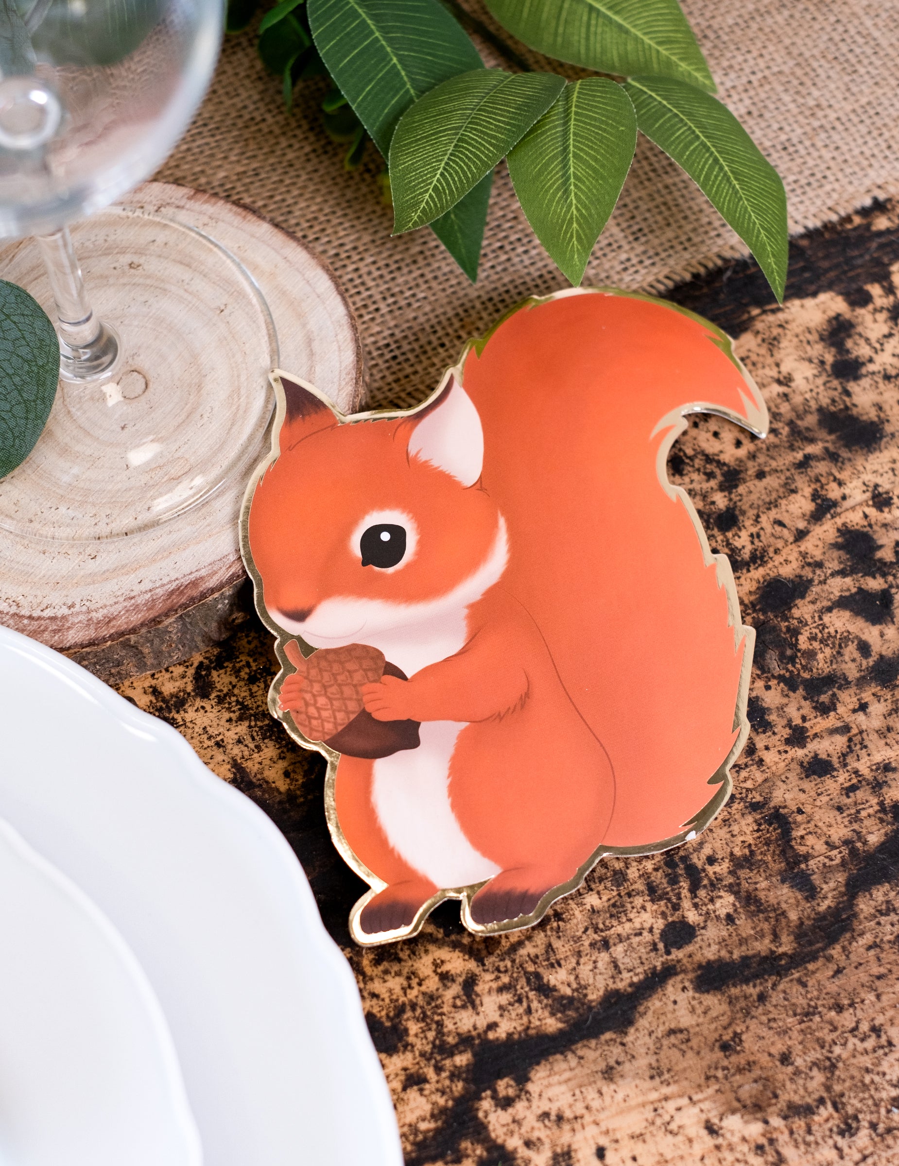 Pripravte si svoju udalosť s touto sadou 8 kusov pozvánky kartónové krabice s rozmermi približne 14 x 13 cm. Každá karta je vyrezaná do tvaru červenej veveričky držiacej malý žaluď pre jedinečný efekt. Zadná strana ponúka praktický priestor na zapísanie všetkých dôležitých informácií o oslave. pozvánky s veveričkami sú ideálne na pozvanie vašich blízkych na narodeniny s tematikou lesných zvierat !
