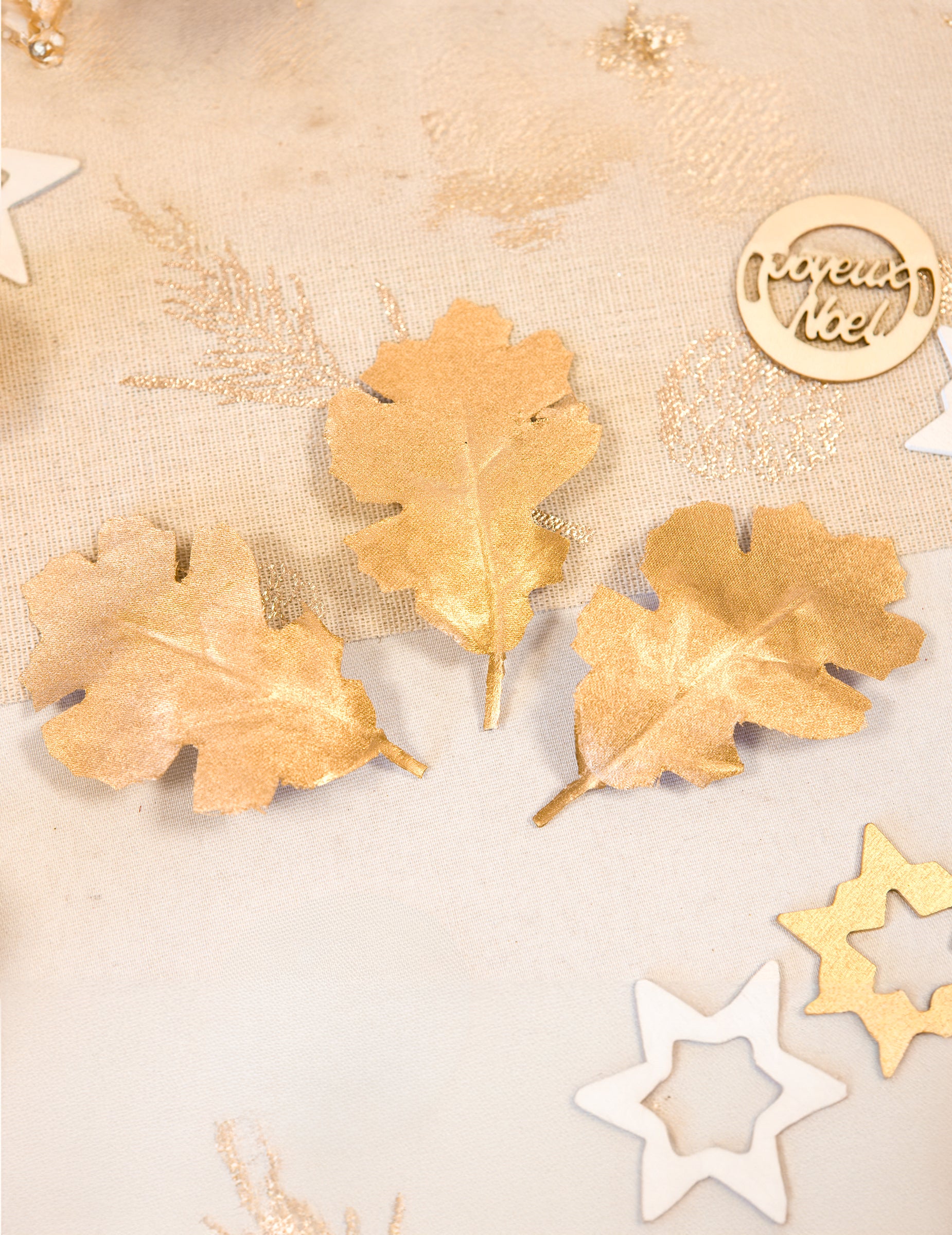 Pozdvihnite svoje udalosti na vyššiu úroveň s touto sadou 9 kusov dubové listy vyrobené z textilu s metalickým vzhľadom. Každý prvok meria približne 7,8 x 5,3 cm a ponúka tieň zlato jasné. Tieto doplnky budú perfektné na vytvorenie dekorácia stola zdokonalený počas manželstvo, z narodeniny alebo na osvetlenie vášho oslavy konca roka.