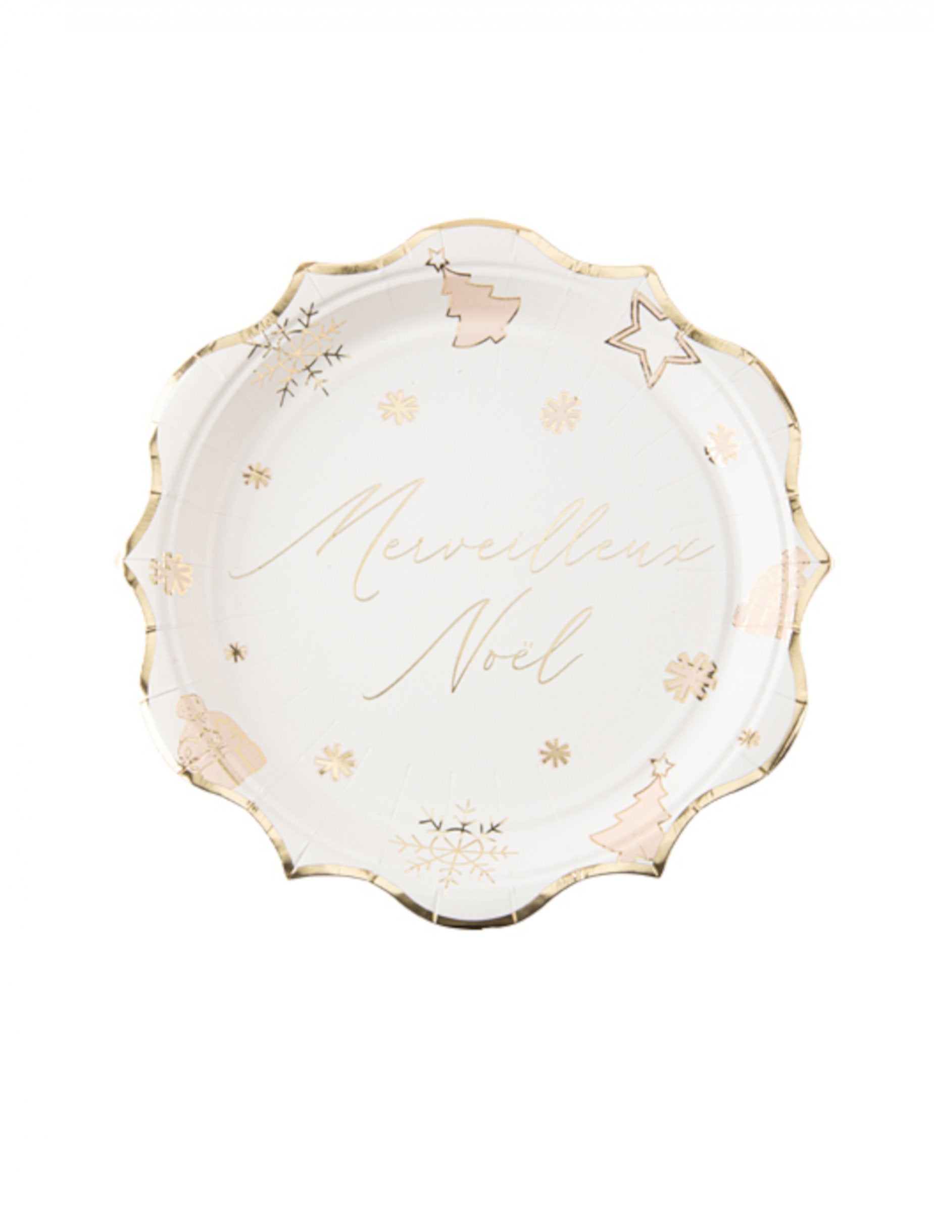 8 bielych a zlatých tanierov s vianočnou tematikou 23 cm kartón