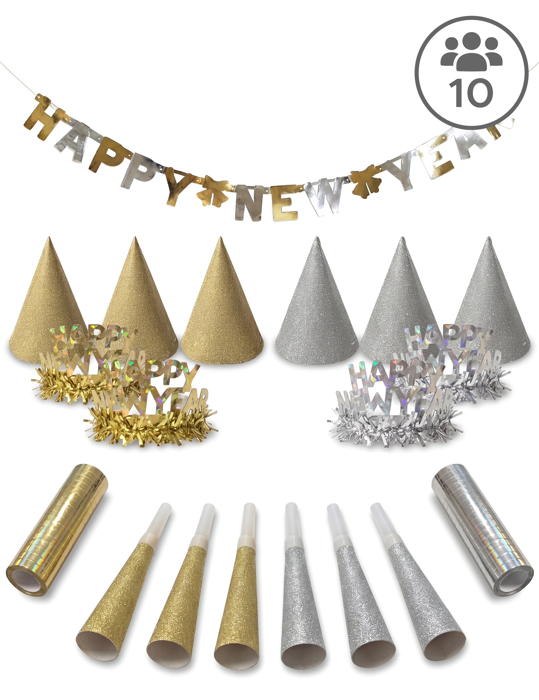 Toto zlatá a strieborná sada na párty darčeky Obsahuje 27 kusov.