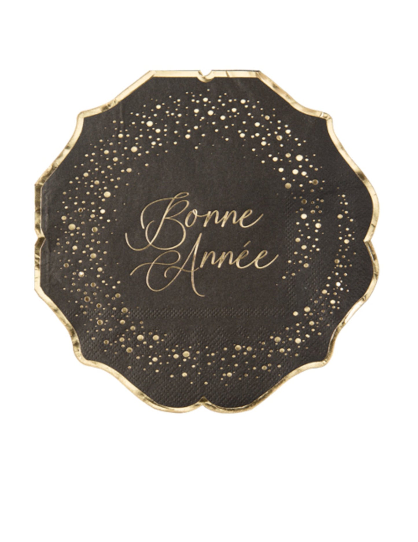 Táto šarža sa skladá zo 16 papierových utierok, ktoré sa meria približne 33 x 33 cm. Sú čierne zdobené zlatými bodmi. V centre nájdeme správu „šťastný nový rok“ v zlatých listoch. Uteráky majú tiež farbu zlata. Táto časť bude ideálna pre krásnu stolovú dekoráciu napríklad pri príležitosti nového roka na elegantnej téme!