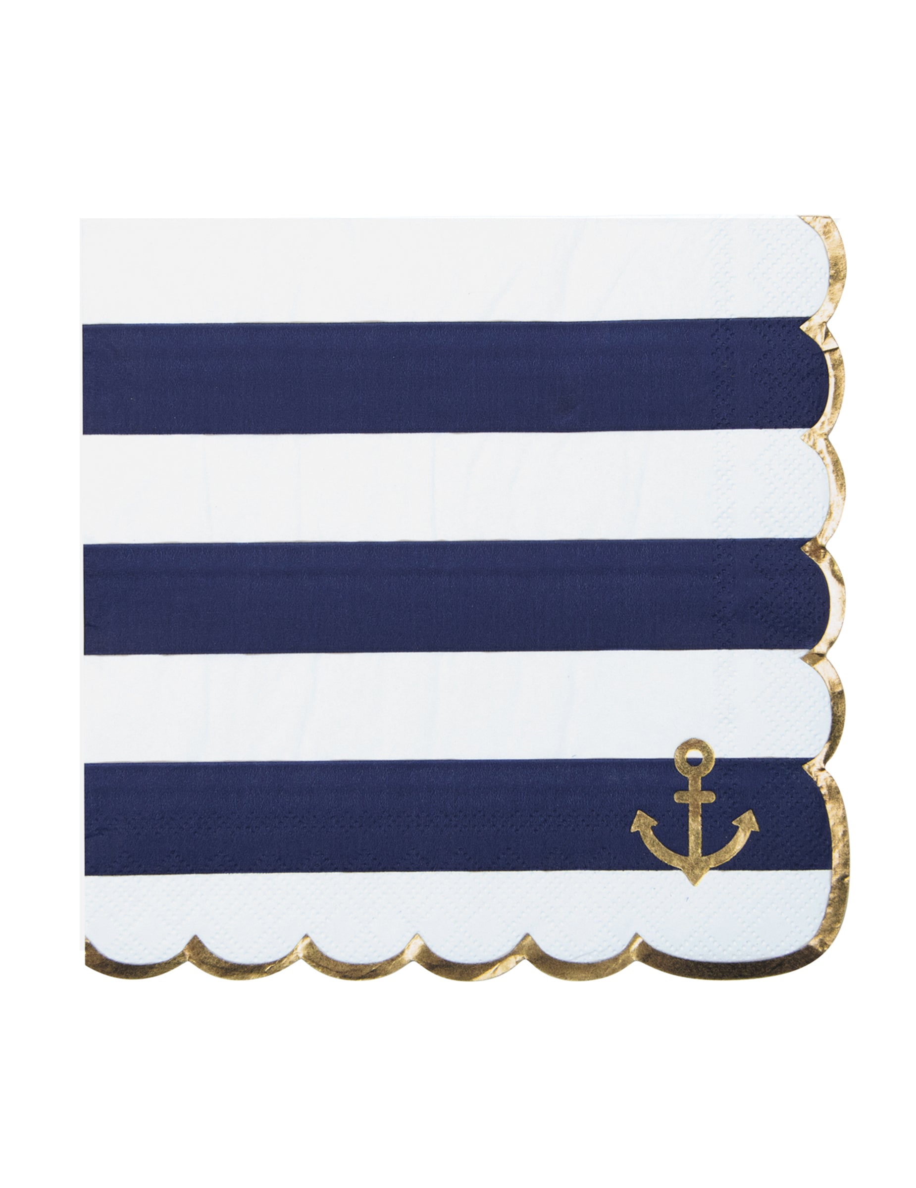 16 vlnčekových papierových obrúskov s námorníckym pruhovaným vzorom, 33 x 33 cm so zlatými okrajmi