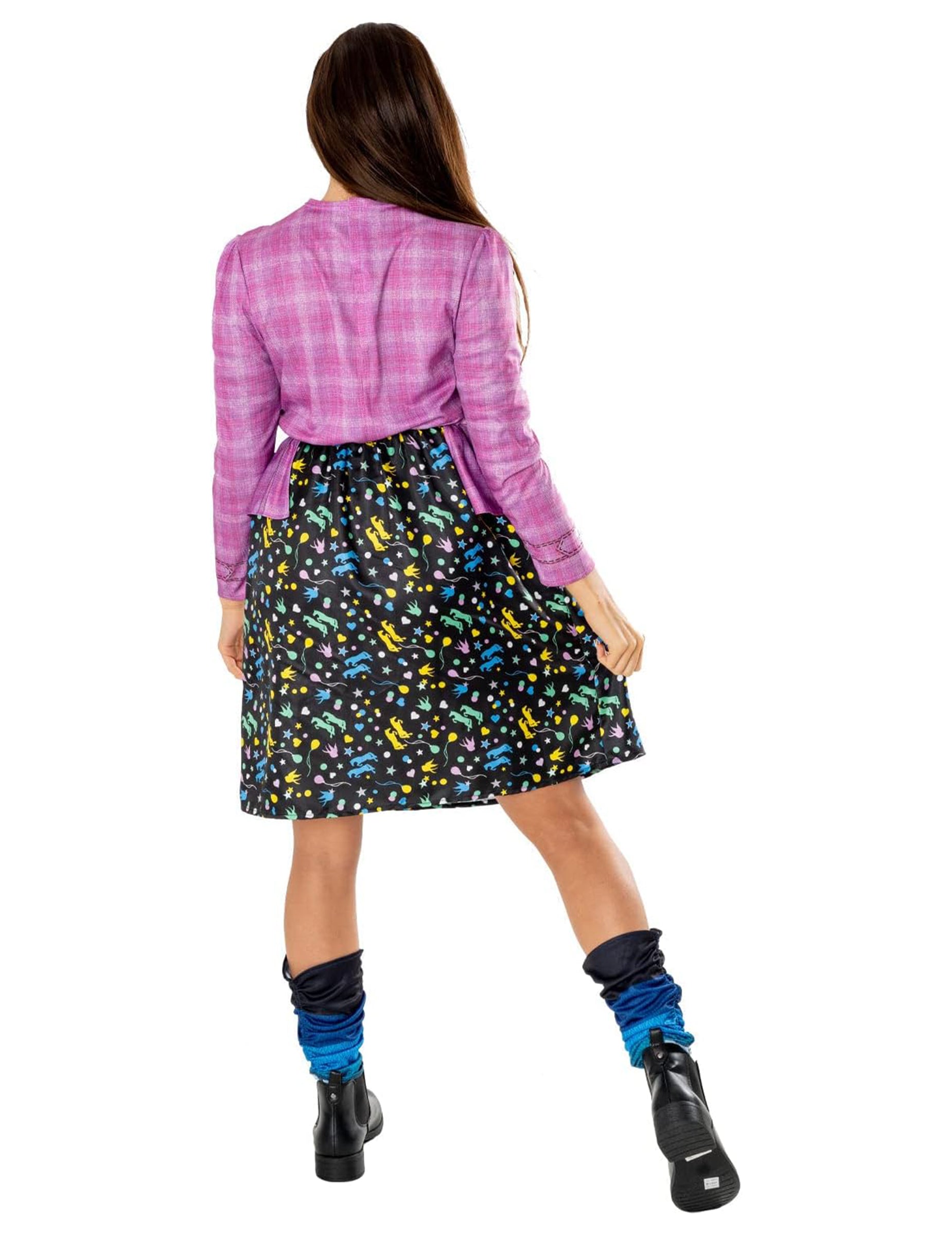 Toto klasické maskovanie Luna Lovegood je určené pre dospelých a pod oficiálnou licenciou Harryho Pottera. Skladá sa z šiat, pár legín a okuliarov. Celkom predstavuje nezabudnuteľný outfit Luna Lovegoodovej jednej zo slávnych postáv v ságe Harryho Pottera. Vrchná časť šaty je štvorcová bunda zdobená falošnými fialovými tlačidlami. Je ohnuté vo veľkosti, aby sa dobre propagovala. Bunda je tiež ozdobená pekným okrúhlym krkom. Sukňa je čierna a vytlačená vzormi patriacimi do vesmíru Luna Lovegood. Prichádza mierne nad kolená. Legíny sú v Jersey a na tónoch modrej. Majú po bokoch elastické šitie, aby vytvorili skladaný efekt. Kultová pena Luna Lovegood Iconic Pink Foam poskytne vášmu prestrojeniu ešte originálnejší dotyk! Toto maskovanie Luna Lovegood vám umožní transformovať sa na jednu z najznámejších postáv v ságe Harryho Pottera! Ideálne pre karneval alebo Halloween!
