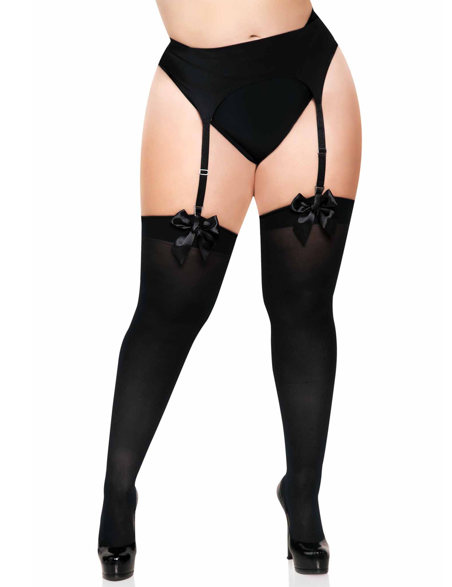 Tieto čierne pančuchy sú pre veľkú veľkosť. Sú nepriehľadné a zdobené saténskymi čiernymi uzlami. Zostanú ľahko vďaka elastickej. Tieto pančuchy sú ideálne pre sexy oblečenie alebo gotický vzhľad počas večera Halloween!