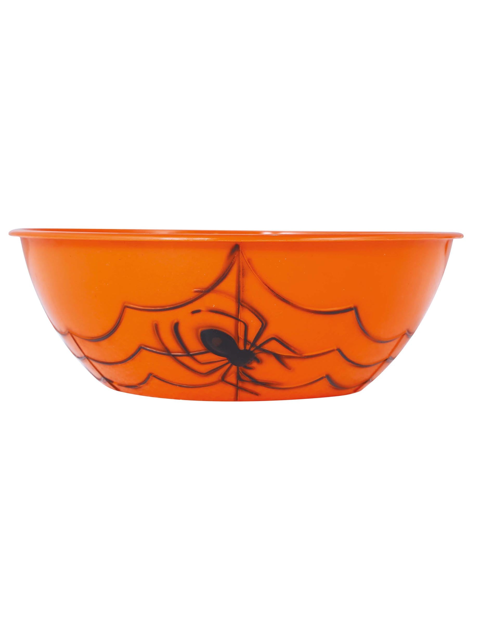 Táto cukrová misa má plastovú a oranžovú farbu. Je zdobený na okrajoch plátien pavúkov. Môžete dať cukríky, čokoládu alebo hranolky. Táto misa je ideálna na zdobenie vášho stola počas Halloweenu!