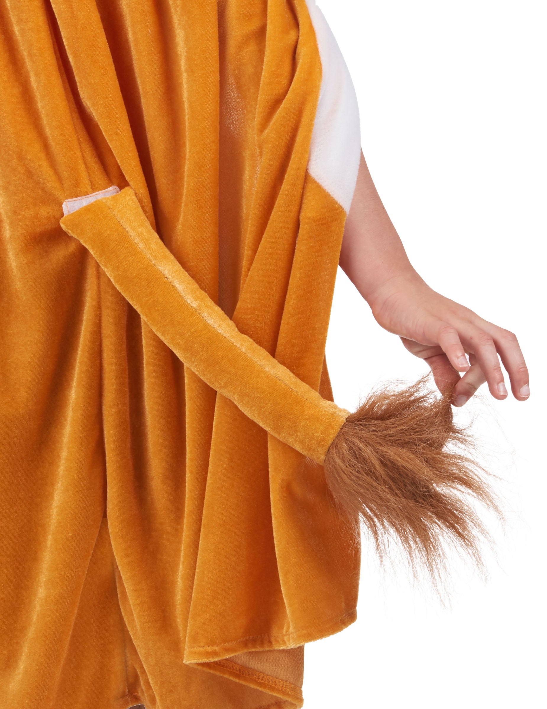 Na zadnej strane tohto leví plášť, chvost je ozdobený umelou kožušinou, ktorá ho najlepšie reprezentuje Kráľ džungle.