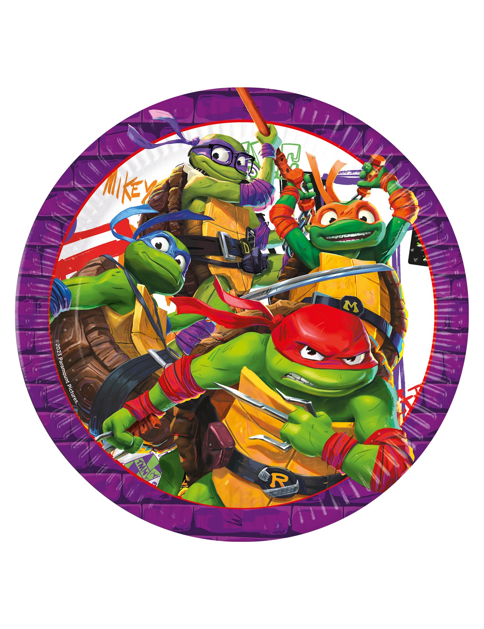 Majú priemer približne 23 cm. Majú fialový okraj s krásnym znázornením tímu v strede. Korytnačky Ninja zložený z Leonardo, Donatello, Michelangelo a Raffael !