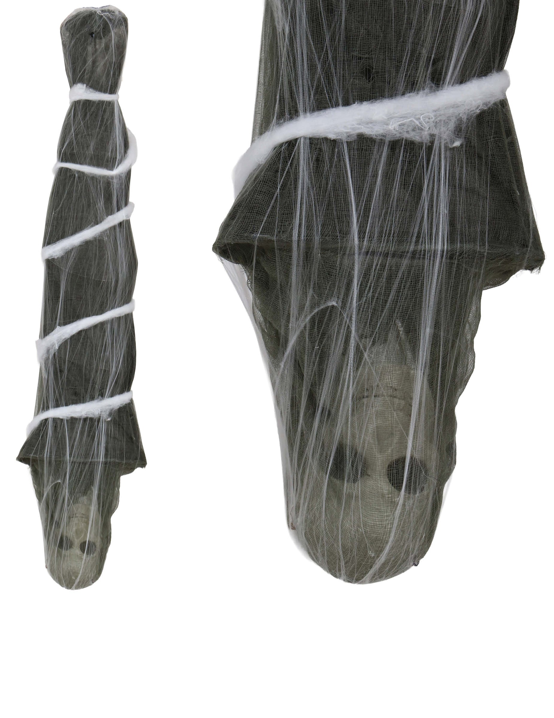 Táto svietiaca múmiová závesná dekorácia meria približne 75 cm. Vyrobené z polyesteru a PVC, má realistické detaily a svetelné efekty (batérie nie sú súčasťou balenia) pre strašidelný efekt. Múmia je zabalená do obväzov, ktoré jej dodávajú autentický a desivý vzhľad. Dôkladné detaily a integrované svetlá pomáhajú vytvárať tajomnú atmosféru. Ľahko sa zavesí a dá sa umiestniť na rôzne miesta pre optimálny vizuálny dojem. Táto svietiaca múmia, ktorá je ideálna na Halloween, večierky s egyptskou tematikou alebo udalosti v strašidelnom dome, dodá vašej výzdobe drámu, najmä ak je zavesená na tmavom mieste, aby sa zvýraznil jej žiarivý efekt.