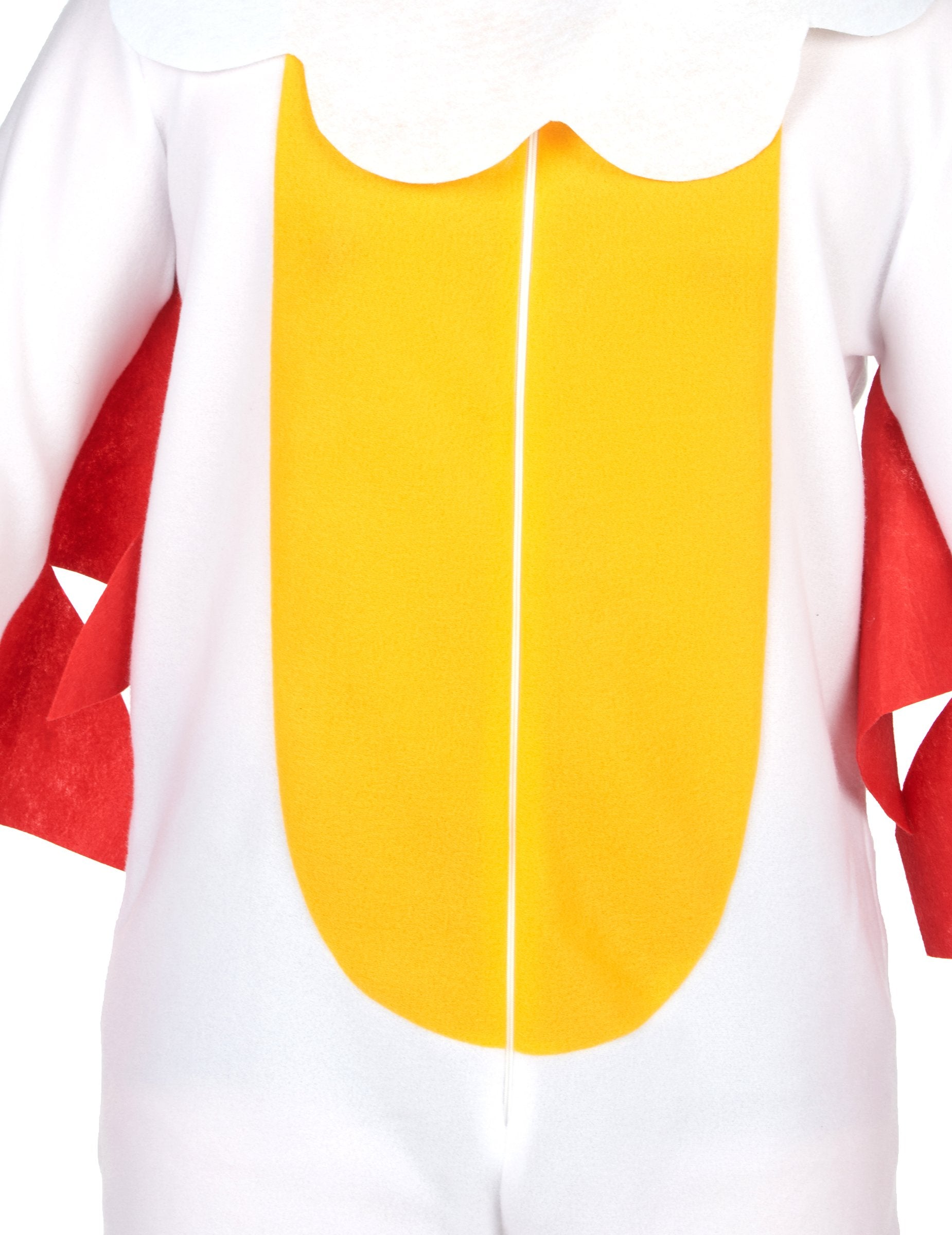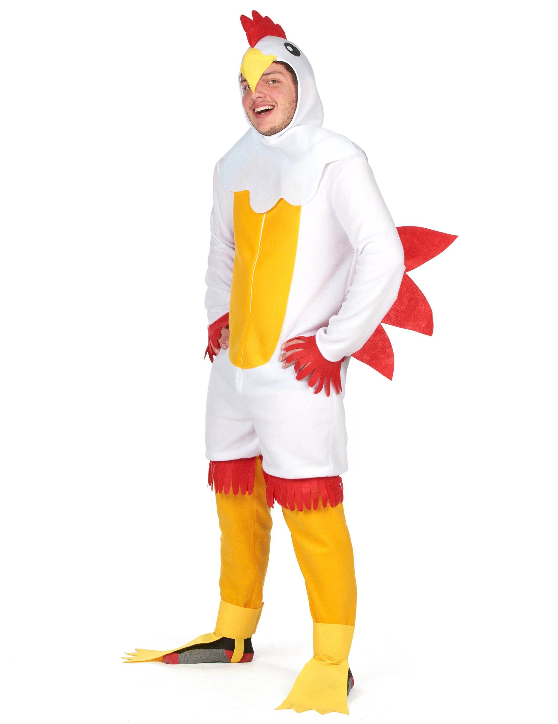 Tento kurací kostým pre dospelých je ideálny na vnesenie humoru na vaše maškarné večierky! Vyznačuje sa mäkkou bielou kombinézou s červenými krídlami všitými do pása, čo poskytuje autentický a zábavný vzhľad. Praktický zips vpredu uľahčuje obliekanie. Žlté návleky dodávajú kuracím nohám konečnú podobu, zatiaľ čo čelenka dotvára vzhľad imitáciou kuracej hlavy, vrátane hrebeňa! Ideálny na karneval, tematickú párty alebo akúkoľvek príležitosť, kde chcete prekvapiť a rozosmiať ľudí, tento kostým vás premení na neprehliadnuteľnú hviezdu večera.
