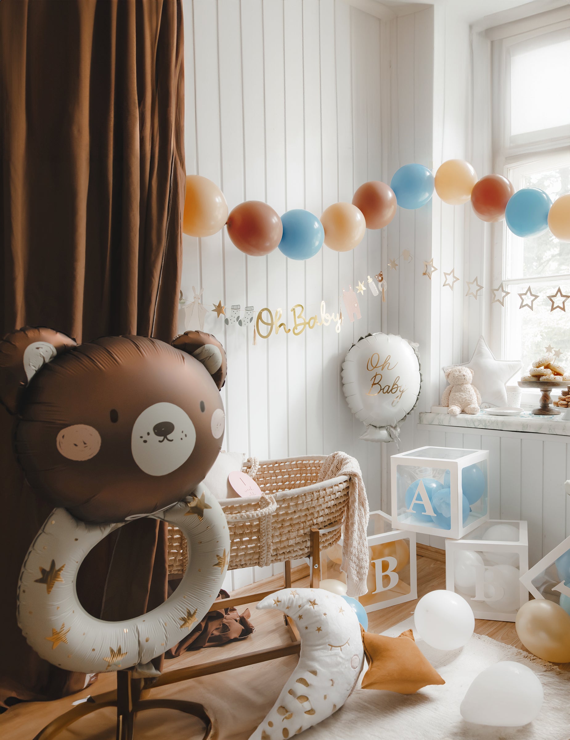 Tento balón Hochet Ourson meria po nafúknutí približne 61 x 88 cm a 45 x 67 cm. Lopta predstavuje hrkálka dieťaťa prekonaného hlavou medveďa. Balón alebo vzduch môžete nafúknuť dodávkou slamy. Bude to perfektná medvedí guľa na prvé narodeniny, bábätko alebo odhalenie pohlavia!