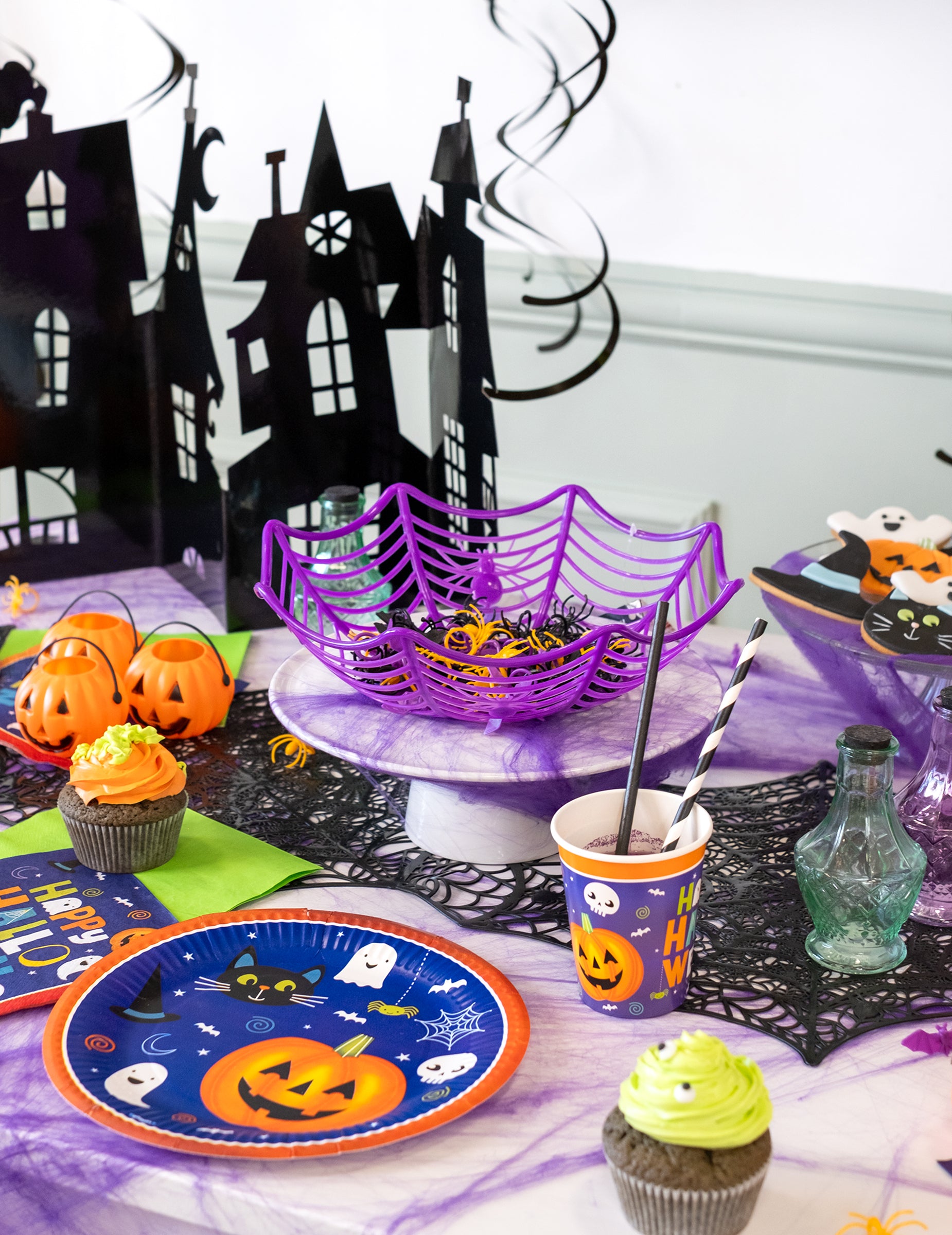 Táto misa na tvare pavúkov prinesie na váš stôl desivú atmosféru! Dimenzie 27 x 8 cm, Je ideálny na prezentáciu vašich dobrôt, aperitínov alebo iných jedál počas večera Halloweenu alebo tematickej udalosti. Jeho fialová farba a jedinečný dizajn z neho robia dekoratívny prvok, ktorý je praktický aj originálny, ideálny na zapôsobenie na vašich hostí. Táto misa bude základným príslušenstvom pre úspešnú párty!