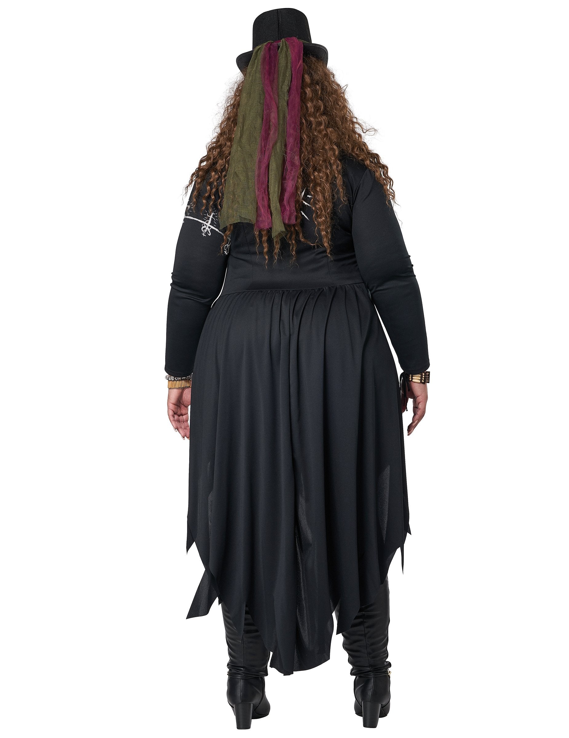 Plongez dans l’univers du mysticisme avec ce déguisement de prêtresse vaudou au style sombre et ensorcelant. Il se compose d’une longue veste noire asymétrique, ornée de détails effilés pour un effet mystérieux et spectaculaire. Le haut rouge texturé, agrémenté de motifs inspirés des rituels vaudous, apporte une touche authentique, tandis que la ceinture décorative avec faux ossements renforce l’allure mystique du costume. Le chapeau haut-de-forme orné de détails occultes vient compléter cette tenue en lui apportant une prestance inégalée. Le collier main de singe, symbole puissant des croyances occultes, vient accentuer le réalisme et l’aura mystique de cette tenue, ajoutant une touche ésotérique à votre allure. Idéal pour Halloween, une soirée à thème ou Halloween, ce déguisement de magicienne vaudou vous garantit un look saisissant et envoutant. Ajoutez quelques accessoires comme un bâton mystique ou un serpent factice pour une transformation encore plus immersive !