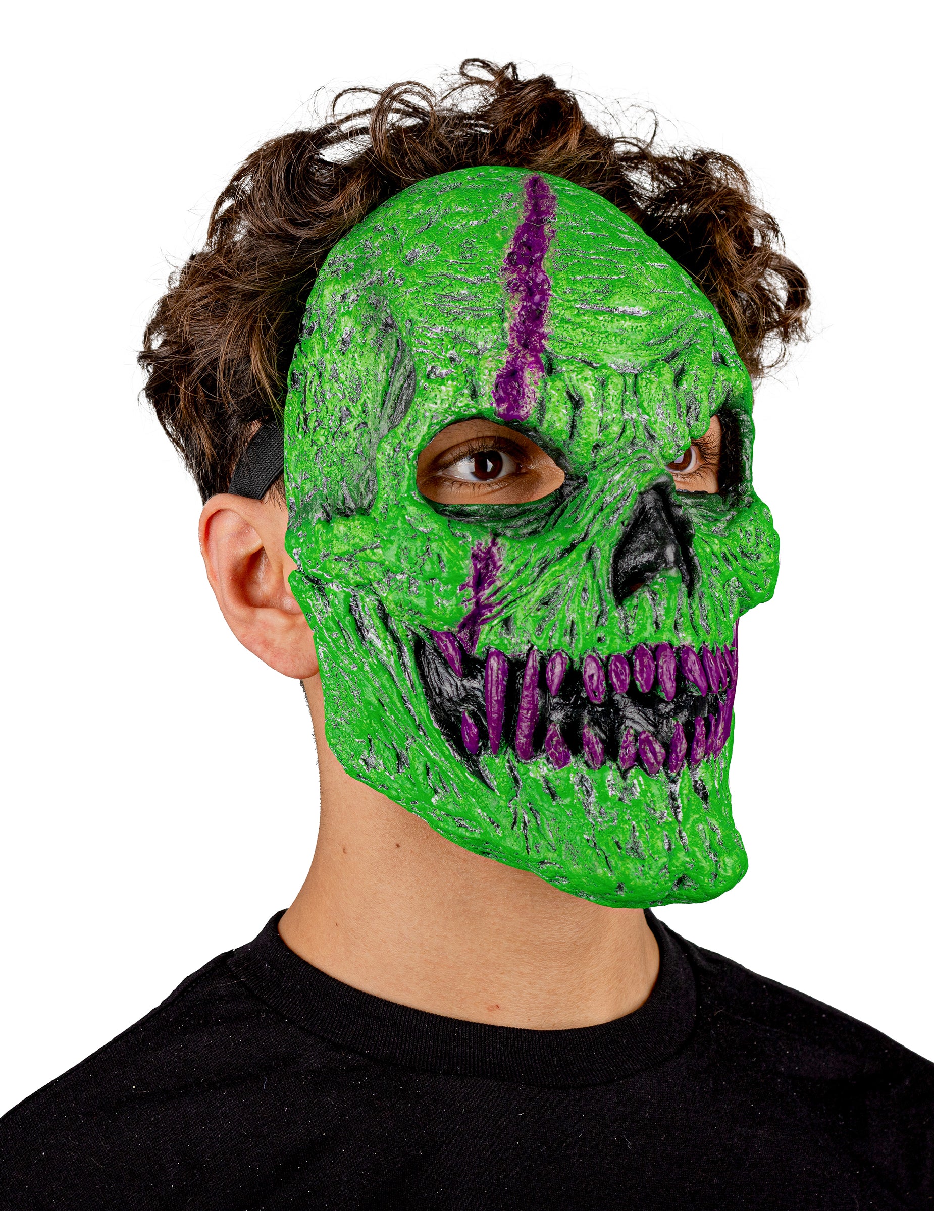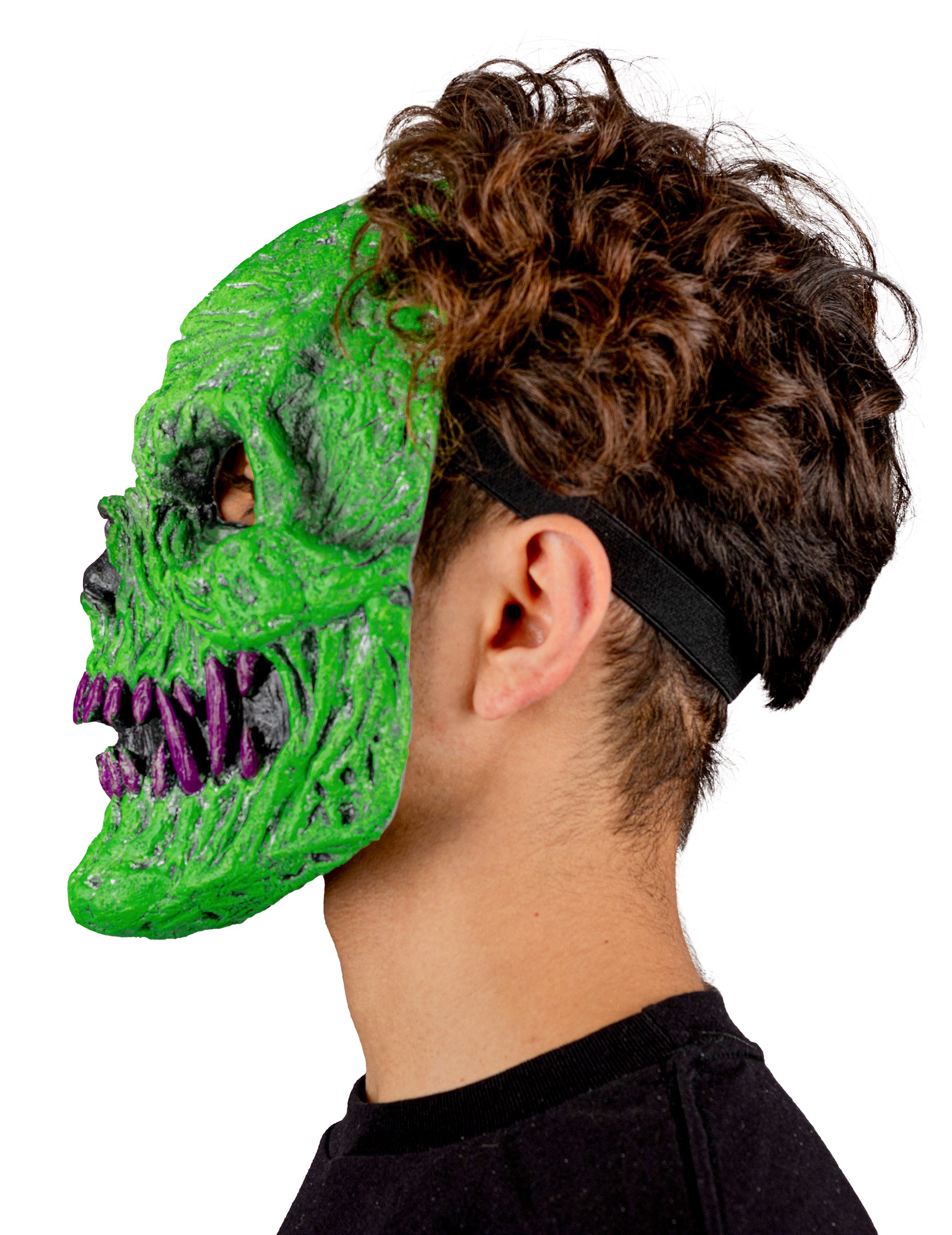 Táto zelená démonická kostra napoly maska ponúka desivý vzhľad so tvarovaným kostným efektom, ghoulishom a fialovými detailmi označenými hlbokými jazvami. Jeho dutý nos a duté oči posilňujú jeho zlovestný vzhľad. Strašidelná funkcia: Táto maska reaguje na čierne svetlo a rozsvieti sa s neónovou zelenou žiarením, ktorá je ideálna pre ešte intenzívnejšiu atmosféru v tme! Táto ľahká maska sa ľahko nosí, pripevňuje sa k zadnej časti hlavy a necháva ústa pre optimálne pohodlie. Ideálne pre Halloween alebo na párty s hrôzou, zaručuje výrazný efekt deň alebo noc!