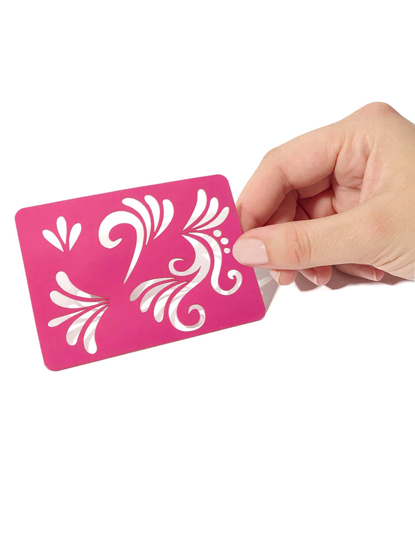 Pridajte dotknutie milosti a elegancie do make -upu pomocou tejto šablóny s jemnými vzormi. Umožňuje vám vytvárať krásne harmonické arabesky a krivky, ideálne pre tekuté a sofistikované vykreslenie. Jej praktický formát zaisťuje jasnú a presnú aplikáciu na pokožke. Táto opakovane použiteľná šablón, ktorá je ideálna pre karneval, kostýmovú párty alebo umelecký makeup, zaručuje pre každé použitie očarujúci efekt!