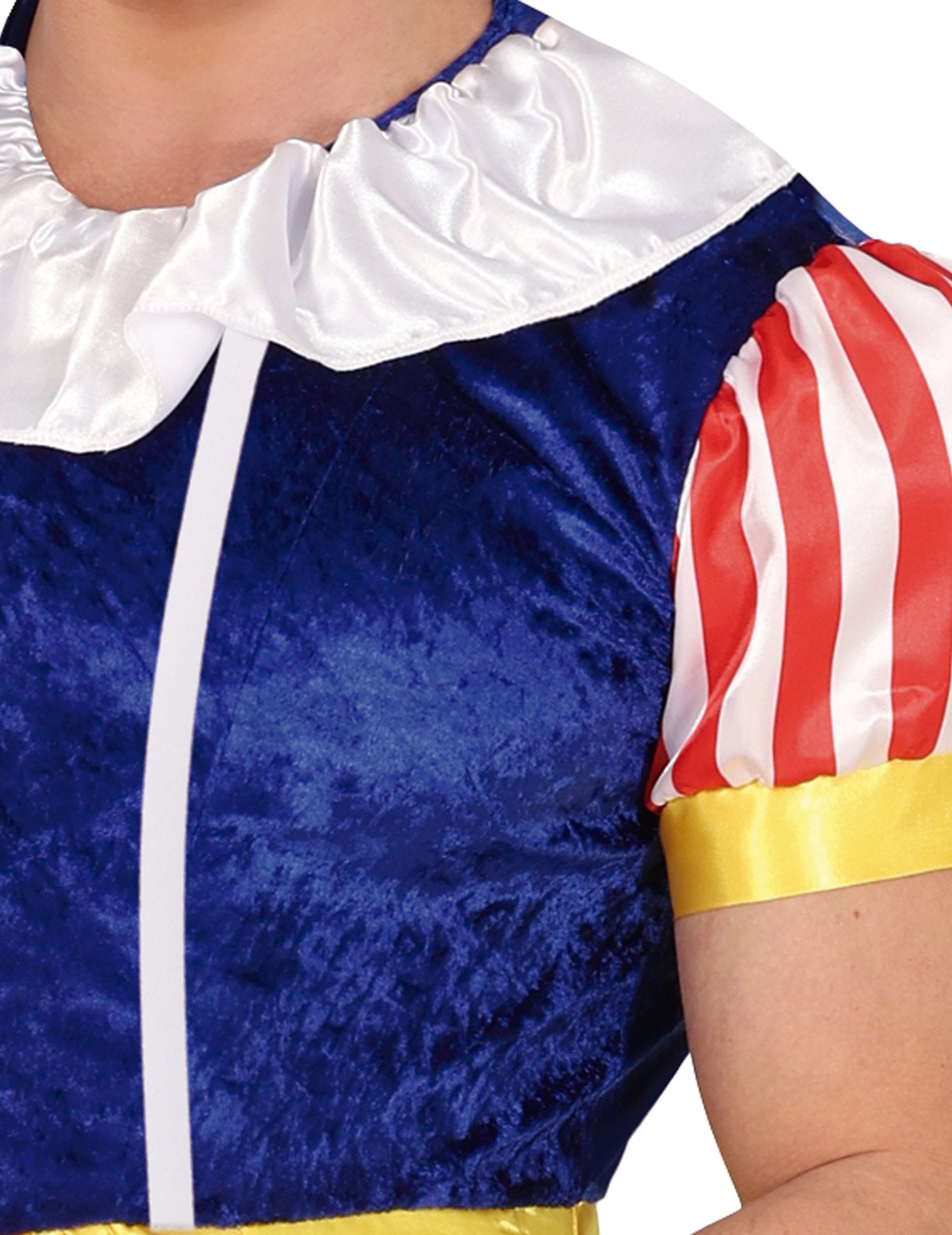 Vďaka nadýchaným pruhovaným rukávom, zamatovo modrému živôtiku a žltej saténovej sukni tento outfit pripomína klasiku v novom šate s poriadnou dávkou humoru. Integrovaný opasok ukrýva zábavné prekvapenie, ktoré zaručene zaujme.