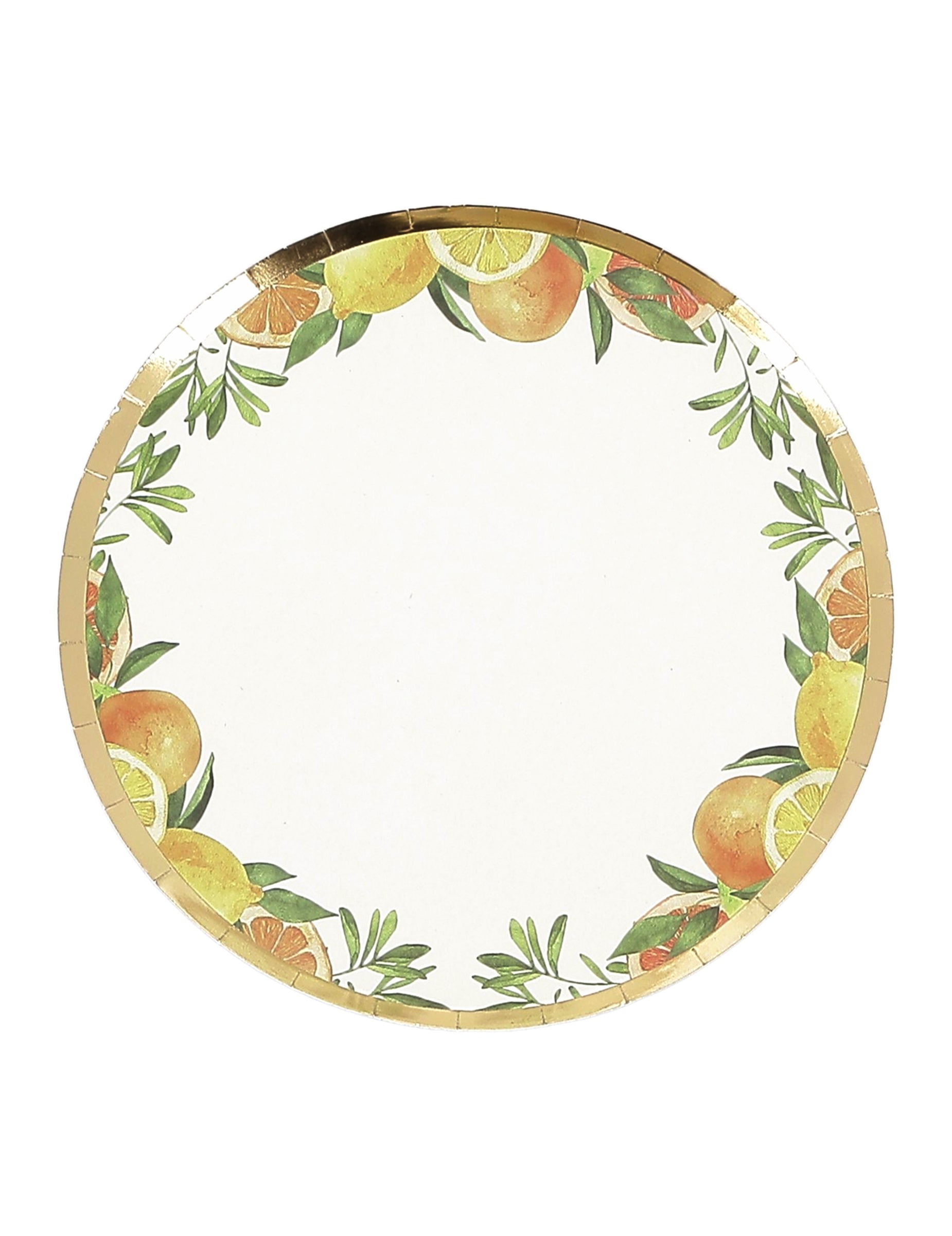Táto položka zahŕňa 8 malých kartónových tanierov po 18 kusoch cm Zdobený potlačou citrusov a lístia na krémovom pozadí, elegantný zlatý lem to umocňuje. jednorazový riadIdeálne na prezentáciu tort alebo drobných koláčikov, dodá vašim tortám nádych sviežosti. dekorácia stola počas letné výročie, záhradnú párty alebo živú oslavu narodenia dieťaťa.