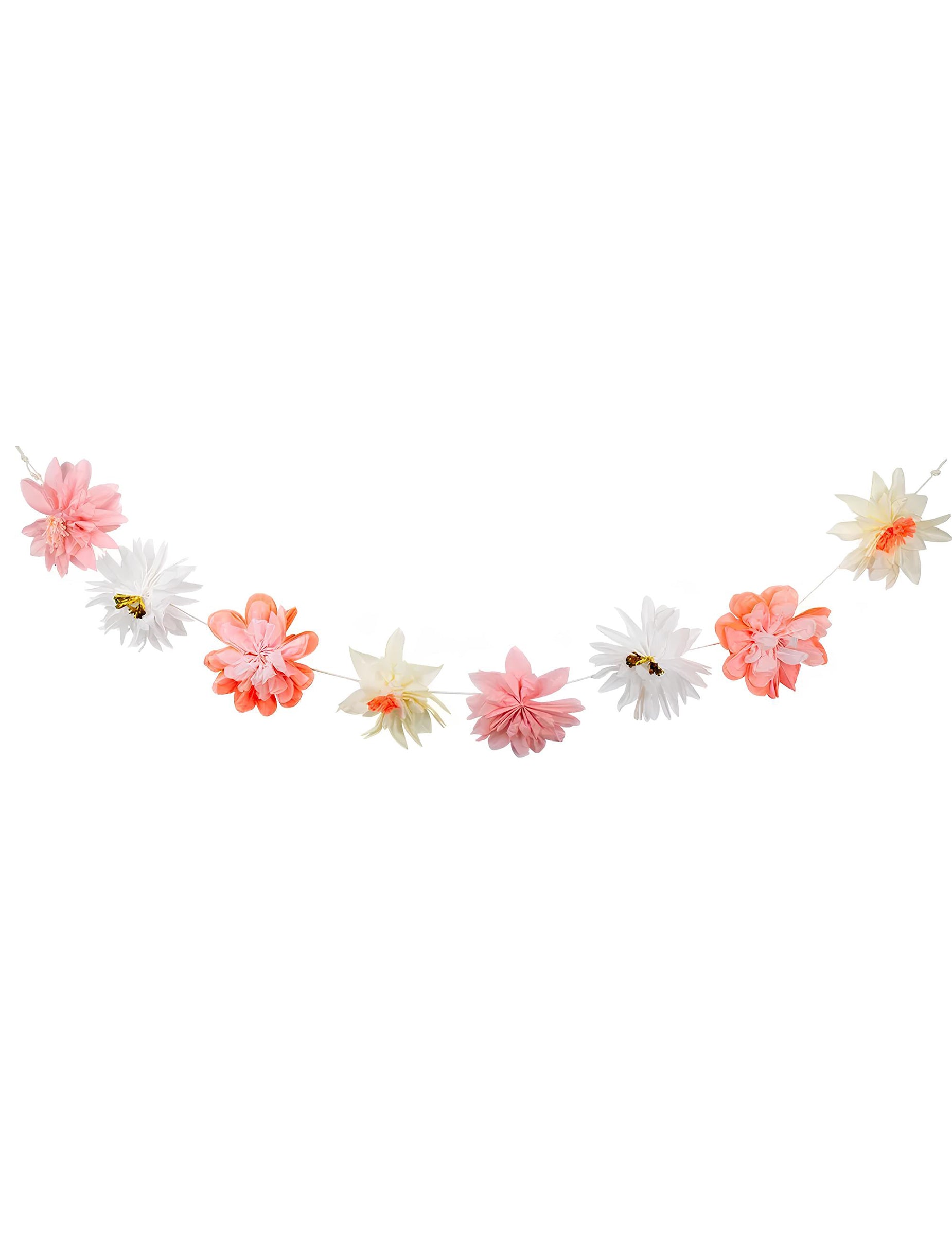 Dodajte svojej udalosti nádych sladkosti s týmto pastelový viacfarebný veniec 3,5 metra dlhá. Skladá sa z jemných kvietkov z hodvábneho papiera v odtieňoch ružovej, broskyňovej a koralovej pre svieži a... jarTento závesný doplnok sa veľmi ľahko inštaluje a elegantne skrášli vaše steny, oblúky alebo príborníky. Je ideálnym prvkom pre... detská oslava, A krst alebo a kvetinové narodeniny v atmosfére Čechy a šik.