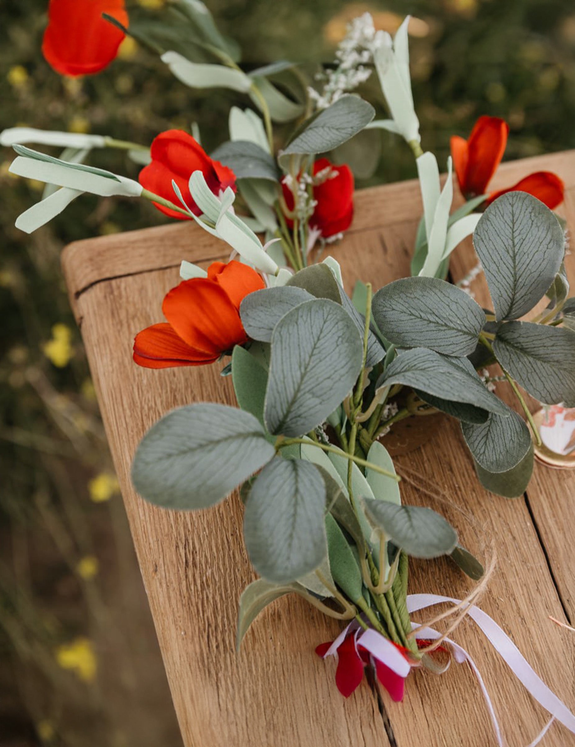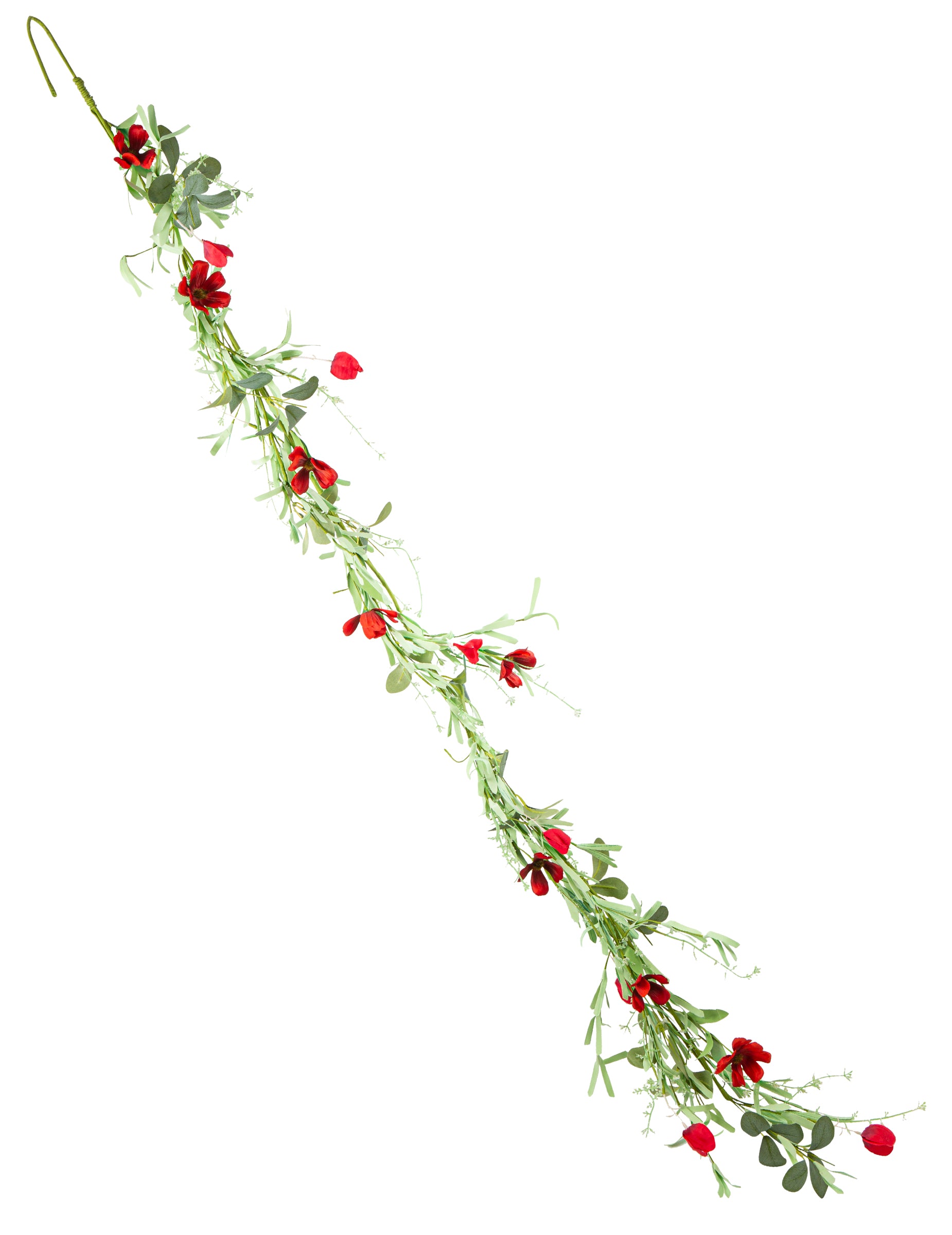 Girlanda z červených listov a kvetov, 1,83 m, vidiecky štýl