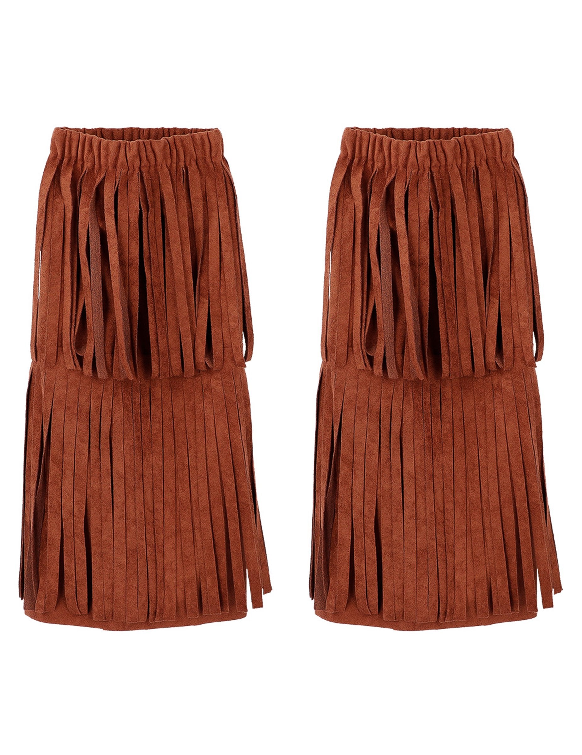 Tieto hnedé strapcové návleky na nohy dokonale doplnia kostým s indiánskou inšpiráciou. Ich mäkký semišový materiál a dlhé strapce z nich robia doplnok, ktorý je jednoduchý a zároveň výrazný.