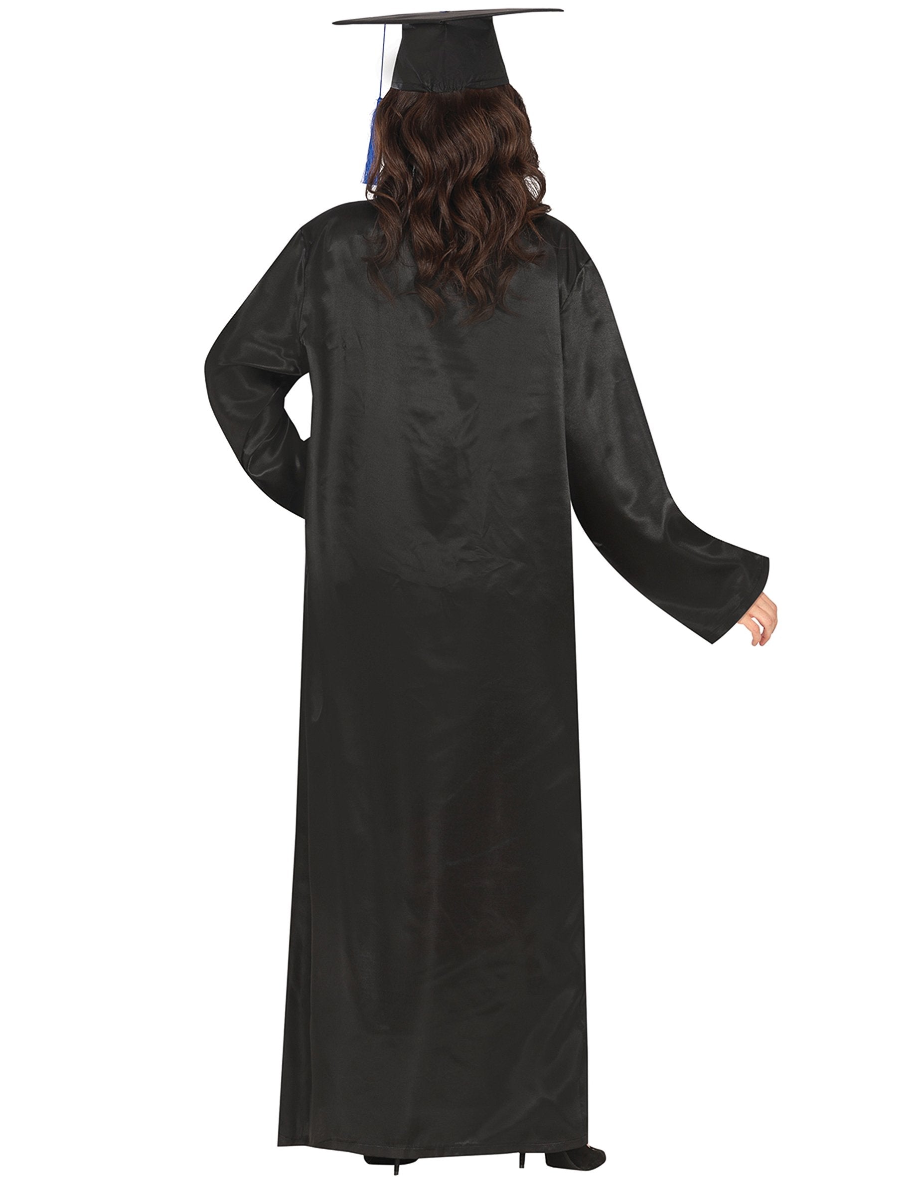 Tento modrý a čierny postgraduálny kostým pre dospelých pozostáva z dlhej tuniky a zodpovedajúceho slávnostného klobúka. Čierna tunika, dlhé rukávy, je sprevádzaná saténovým modrým golierom v tvare V, ktorý pripomína oblečenie nesené počas diplomových zliav. Štvorcový klobúk s modrým pompomom dokonale dokončí celý. Ideálne pre tematickú párty alebo šou!