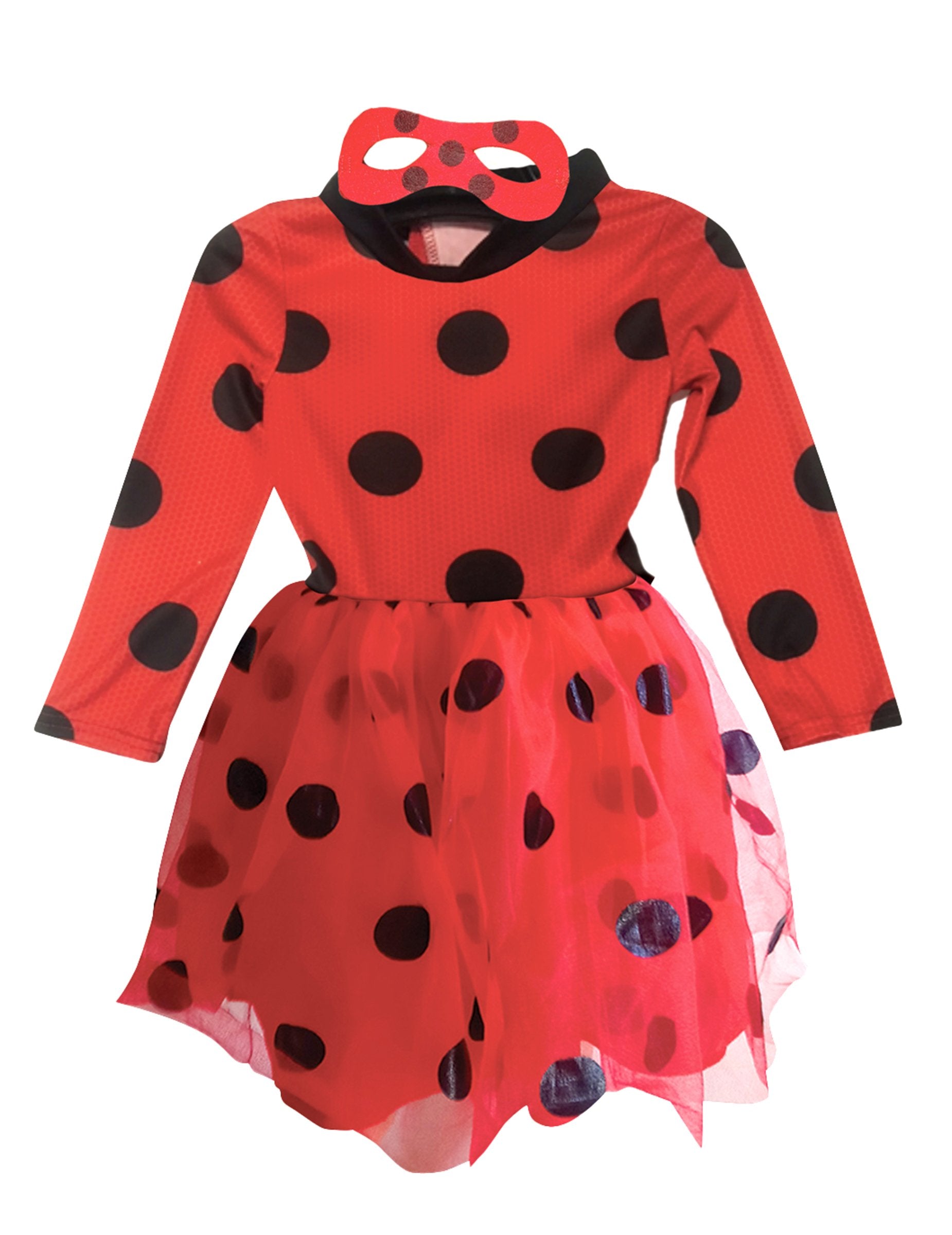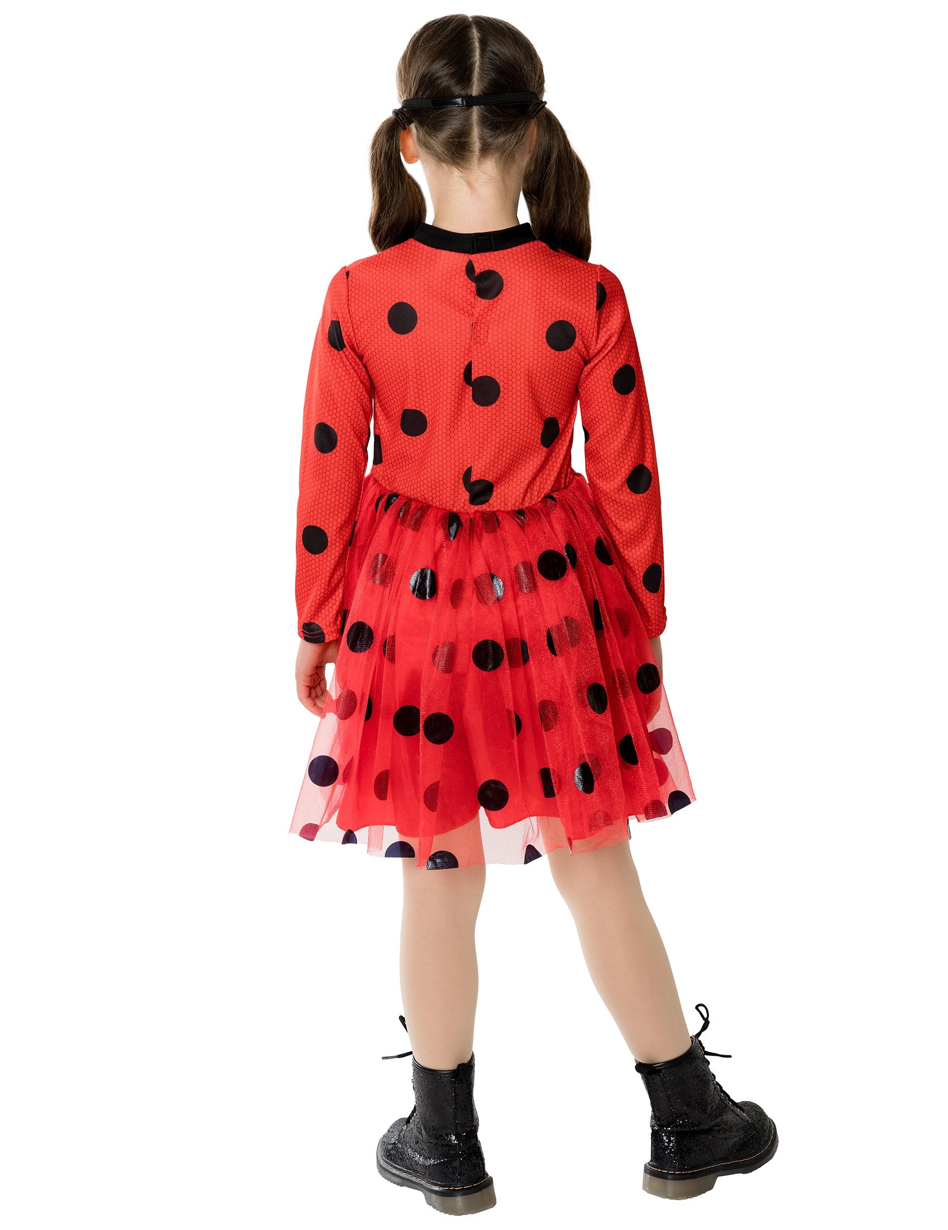Ce déguisement Ladybug Miraculous pour enfant comprend une robe rouge à pois noirs accompagnée d’un masque assorti, pour une transformation instantanée en héroïne préférée des petits. La robe à manches longues est dotée d’un haut ajusté et d’une jupe en tulle à pois, qui apporte du volume et un effet virevoltant plein de légèreté. L’ensemble affiche un contraste saisissant entre le rouge éclatant et les pois noirs emblématiques du costume de Ladybug. Le masque complète parfaitement la tenue et dissimule l’identité de la justicière, pour plonger immédiatement dans l’univers de Miraculous. Un costume idéal pour incarner Ladybug lors du Carnaval, d’un goûter d’anniversaire ou de toute fête costumée.