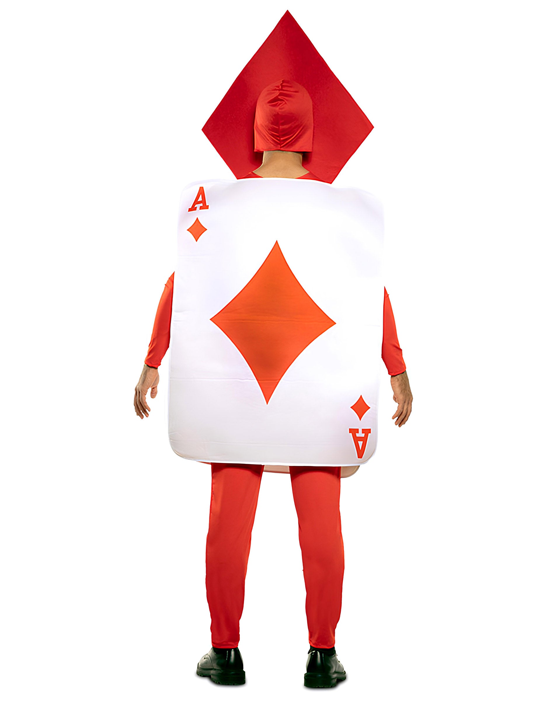Toto eso diamantov kostým pre dospelých obsahuje obrovský kostým na kartu a zodpovedajúci klobúk v tvare diamantu. Biela tunika s hrubým machovým efektom je zdobená výraznými červenými symbolmi esa diamantov. Jeho symetrický dizajn a starostlivé povrchové úpravy zaisťujú siluetu, ktorá je zábavná a rozpoznateľná. Klobúk v tvare štvorca, rigidný a impozantný, celú vec na vrchole silného a neobvyklého vizuálneho efektu. Ideálne pre tematickú párty v kasíne, rozmarnú udalosť alebo na dokončenie skupiny kariet inšpirovaných slávnymi príbehmi.