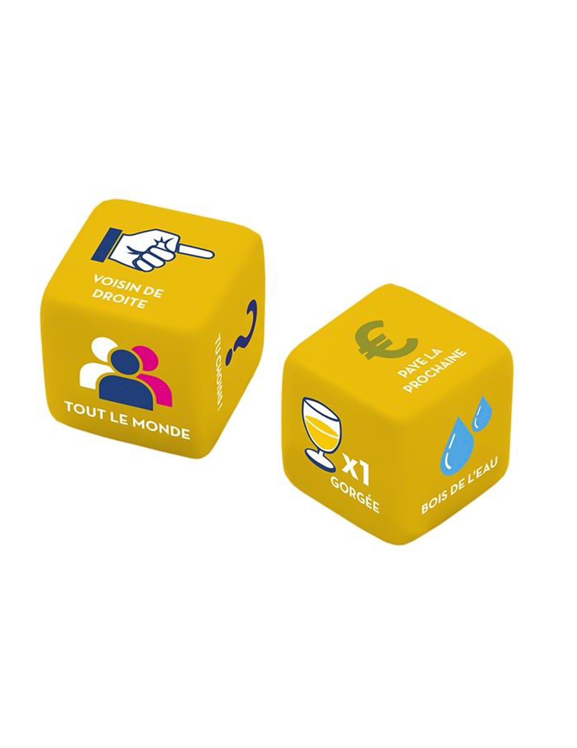 Táto „pastis“ pitná hra na kocky obsahuje 2 plastové kocky 3 x 3 cm, so správami vo francúzštine vytlačených na každej strane. Ideálne na oživenie aperitu alebo večer s priateľmi, každý hod má vtipnú akciu alebo dúšok na prehltnutie. Jednoduché a priateľské, je ideálnym doplnkom na vytvorenie slávnostnej atmosféry okolo nápoja.