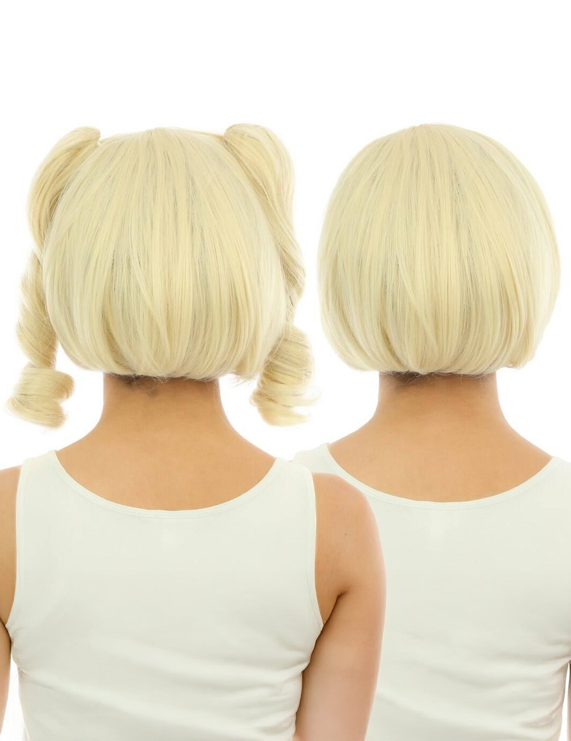Cette perruque blonde courte est parfaite pour incarner un personnage d’univers manga. Elle est fournie avec 2 couettes détachables, à fixer facilement grâce aux pinces intégrées. Selon l’envie, vous pouvez les retirer ou les repositionner. La perruque est coiffable et lissable, pour personnaliser votre look à volonté. Un accessoire idéal pour une convention, un cosplay ou une soirée déguisée !