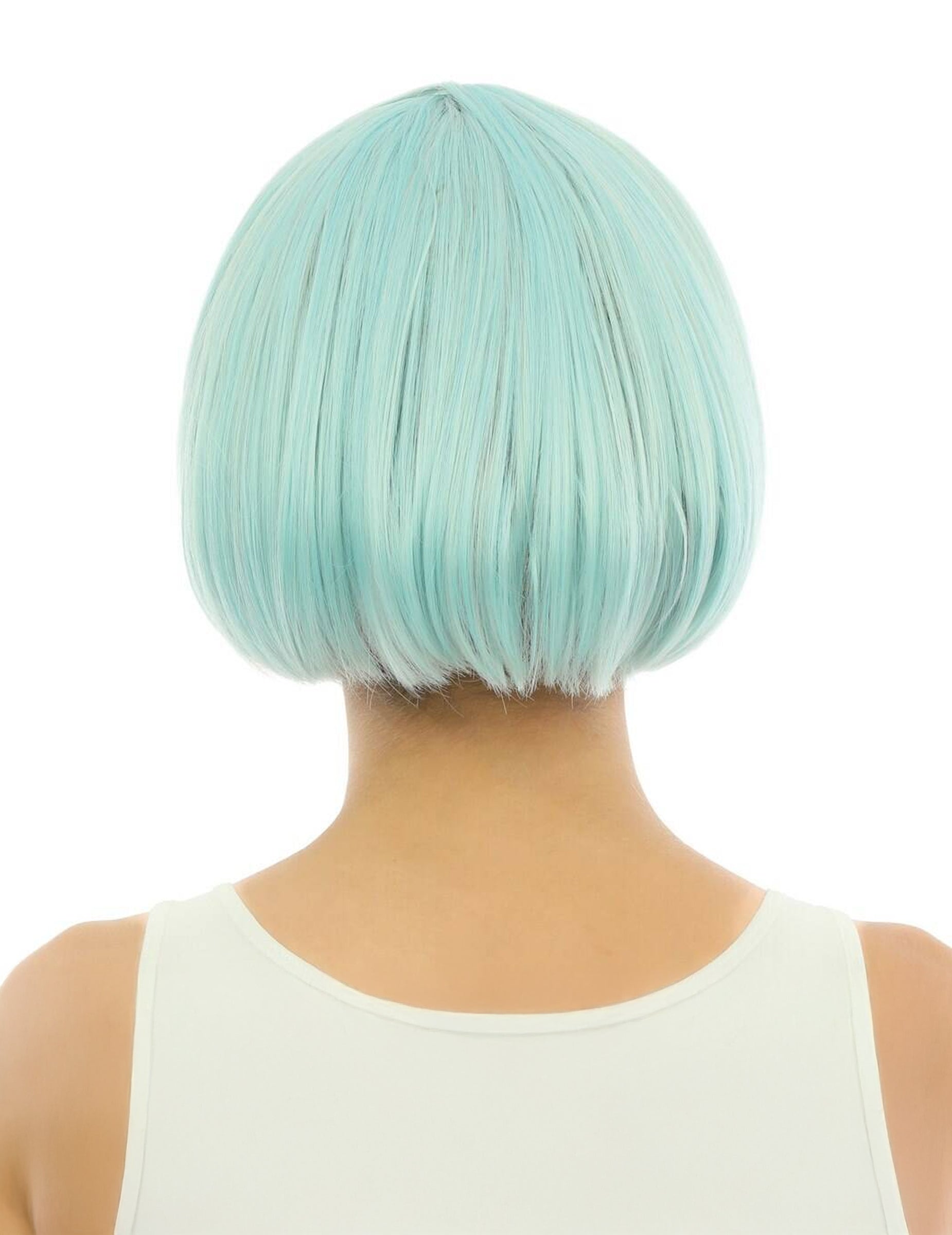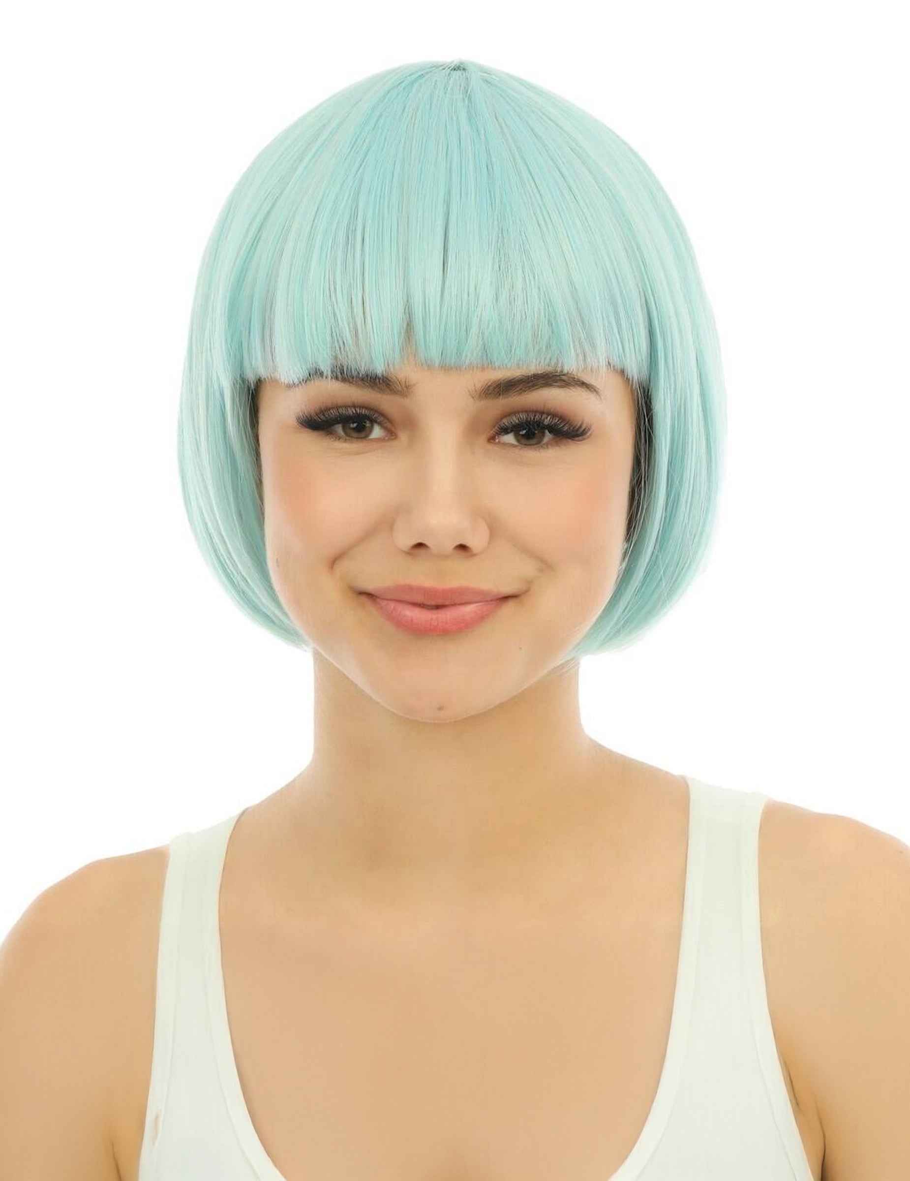 Cette perruque courte bleu pastel luxe pour adulte offre une coupe au carré avec frange, facile à porter et pleine de charme. Elle est coiffable et lissable, pour ajuster la forme selon vos envies et votre déguisement. Idéale pour un cosplay, une fête costumée ou une soirée à thème colorée. Un accessoire tout en finesse pour se démarquer !