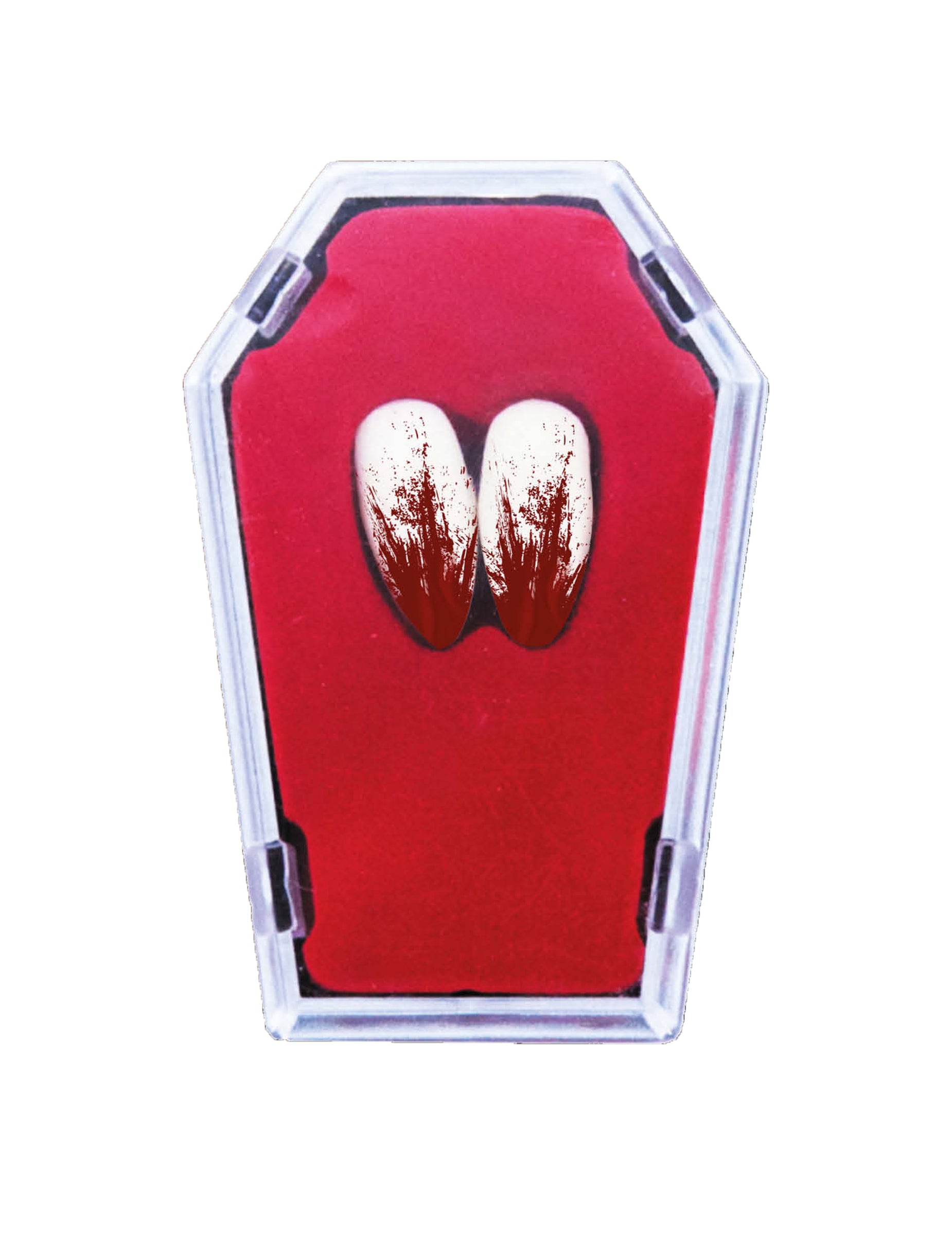 Ces dents de vampire ensanglantées contiennent deux crocs réalistes à l’effet taché de rouge, livrés dans un coffret en forme de cercueil. L’intérieur comprend du termoplastique, à ramollir dans de l’eau chaude avant application. Une fois souple, il suffit de presser les crocs sur ses propres dents pour un maintien ajusté. Parfaites pour Halloween, ces dents transforment n’importe quel sourire en morsure terrifiante, idéale pour un costume de vampire assoiffé.