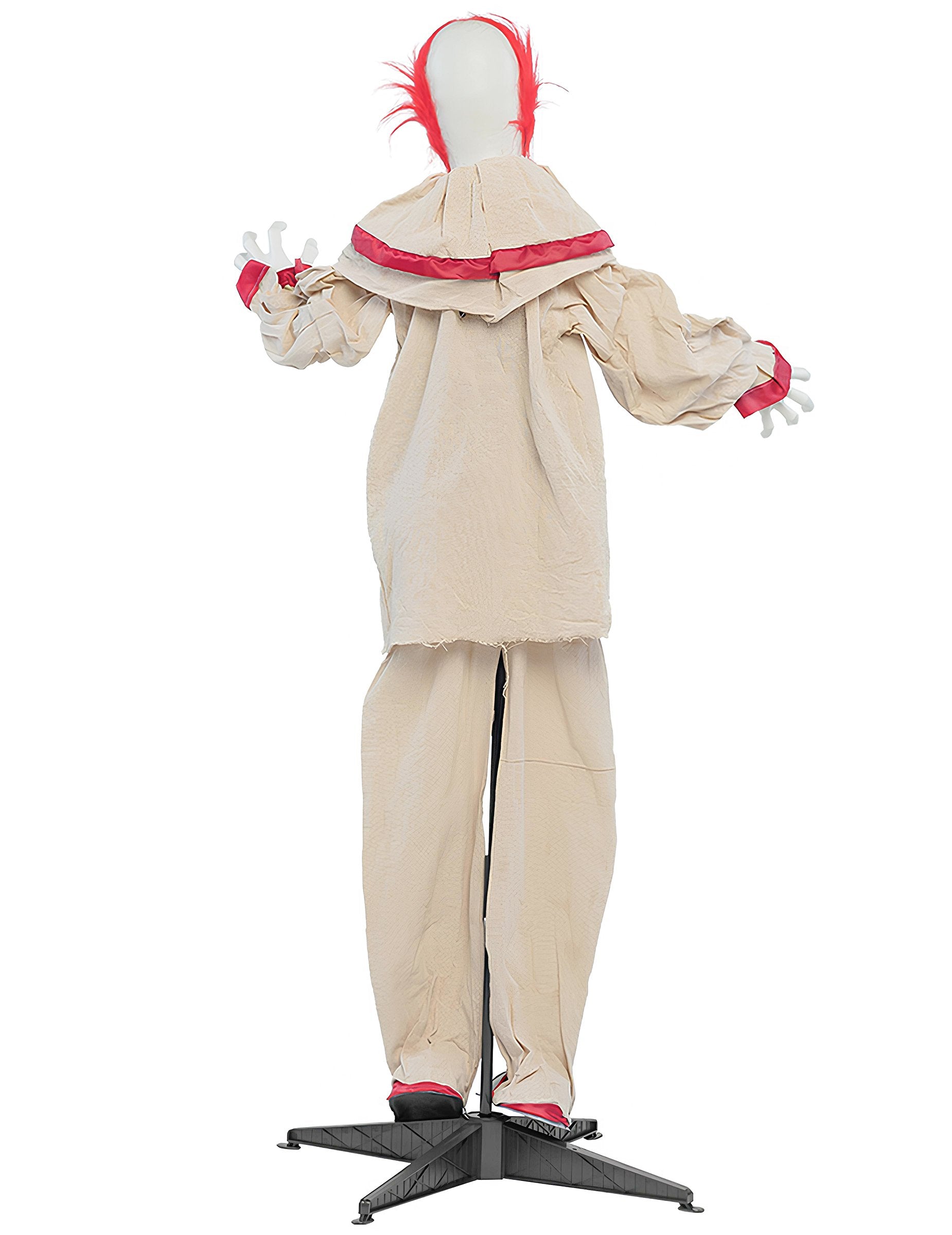 Prineste dotyk čistej hrôzy na svoju scénu s týmto animovaným klaunom 153 cm Približne so zamrznutým a znepokojujúcim úsmevom. Jeho béžový oblek pruhovaný červenou, jeho bledá tvár so zlovestným make -upom a jeho znepokojujúcou prítomnosťou stačí na to, aby krv prebehla. Vďaka svojim zvukovým a pohybovým senzorom sa aktivuje hneď, ako sa návštevník blíži. Jeho oči žiaria intenzívnym svetlom, pohybuje sa znepokojujúcimi spôsobmi a vyžaruje desivé zvuky. Dekorácia pracuje s 3 batériami AAA (nie je súčasťou) pre najvýraznejší kombinovaný efekt svetla, zvuku a animácie. Táto postava je ideálna pre strašidelné prostredie domu, večer Halloween, hororové okno alebo strašidelný klaunový priestor, táto postava sa rýchlo stáva najobávanejšou príťažlivosťou v prostredí.
