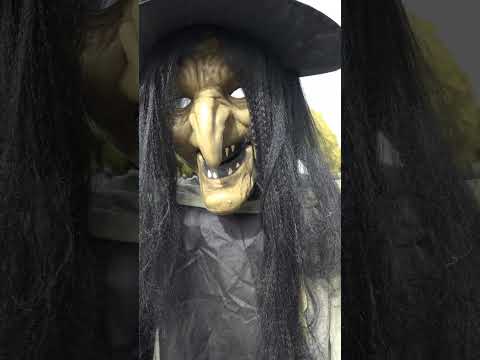 Hneď ako je detekovaný pohybAktivuje sa automaticky: jeho oči ožijú a pohybujú sa vďaka animácii na LCD obrazovke. hlava sa otáča zľava doprava Hovorí drsným, čarodejníckym hlasom po francúzsky, anglicky a nemecky, sprevádzaný krákaním vrán, ktoré vytvára zlovestnú atmosféru. Animáciu môžete spustiť aj pomocou tlačidla Vyskúšajte ma na zariadení.