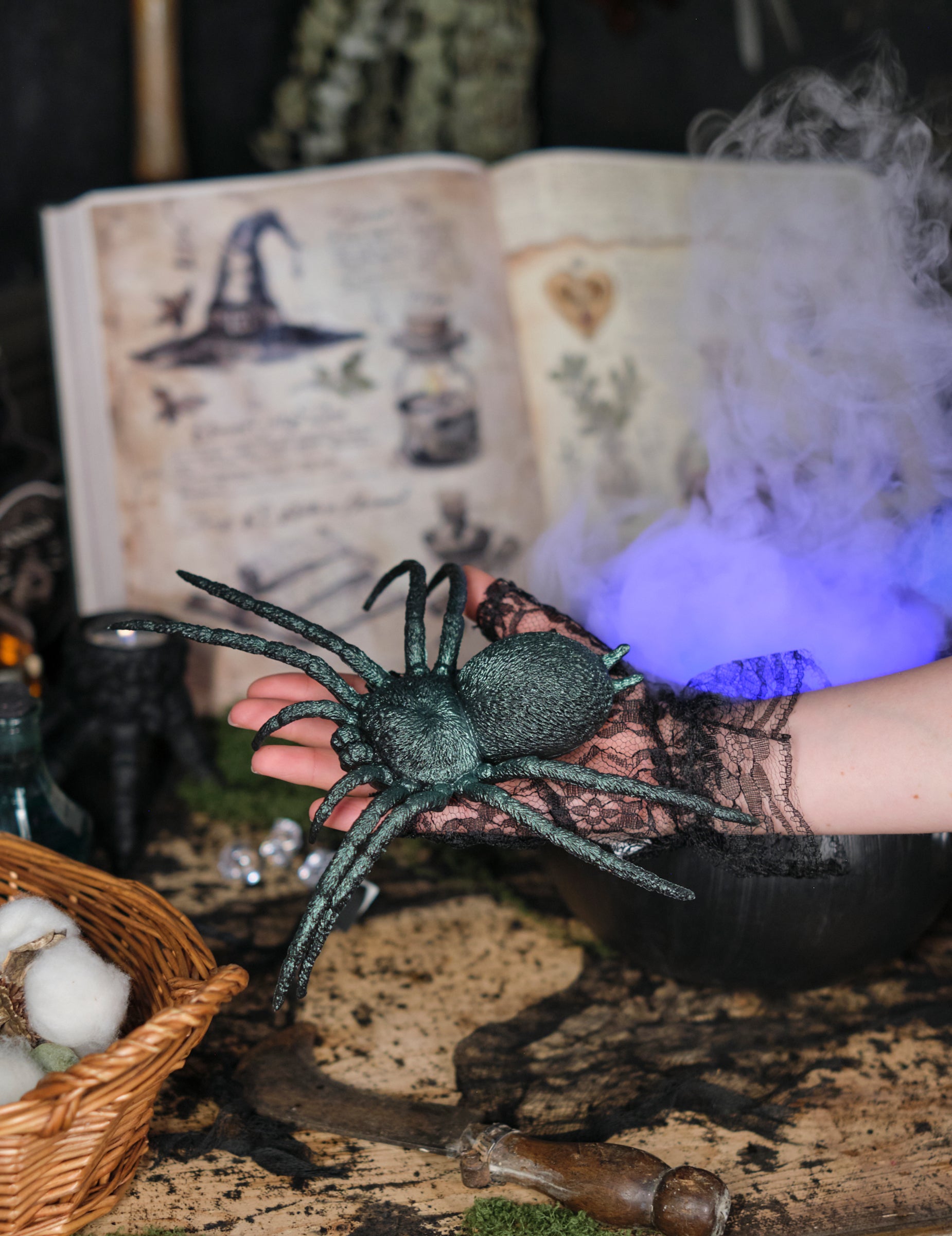 Tento dúhový zelený plastový pavúk 23 cm je ideálny na pridanie strašidelného a vizuálne zaujímavého dotyku vášho dekoru Halloween. Meranie 23 x 17,5 x 3,8 cm, Môže byť umiestnený na stôl, stenu alebo v srdci dekoratívneho plátna. Jeho textúrovaný povrch a kovové zelené odrazy mu dodávajú vzhľad, ktorý je rovnako záhadný ako hrozivý. Perfektné na dokončenie čarodejníckeho vesmíru, cintorína alebo denného hmyzu, priťahuje oko, zatiaľ čo siatí pochybnosti. Jednoduchý dekoratívny prvok, ale mimoriadne efektívny na ponorenie vašej scény do atmosféry pavúkov.