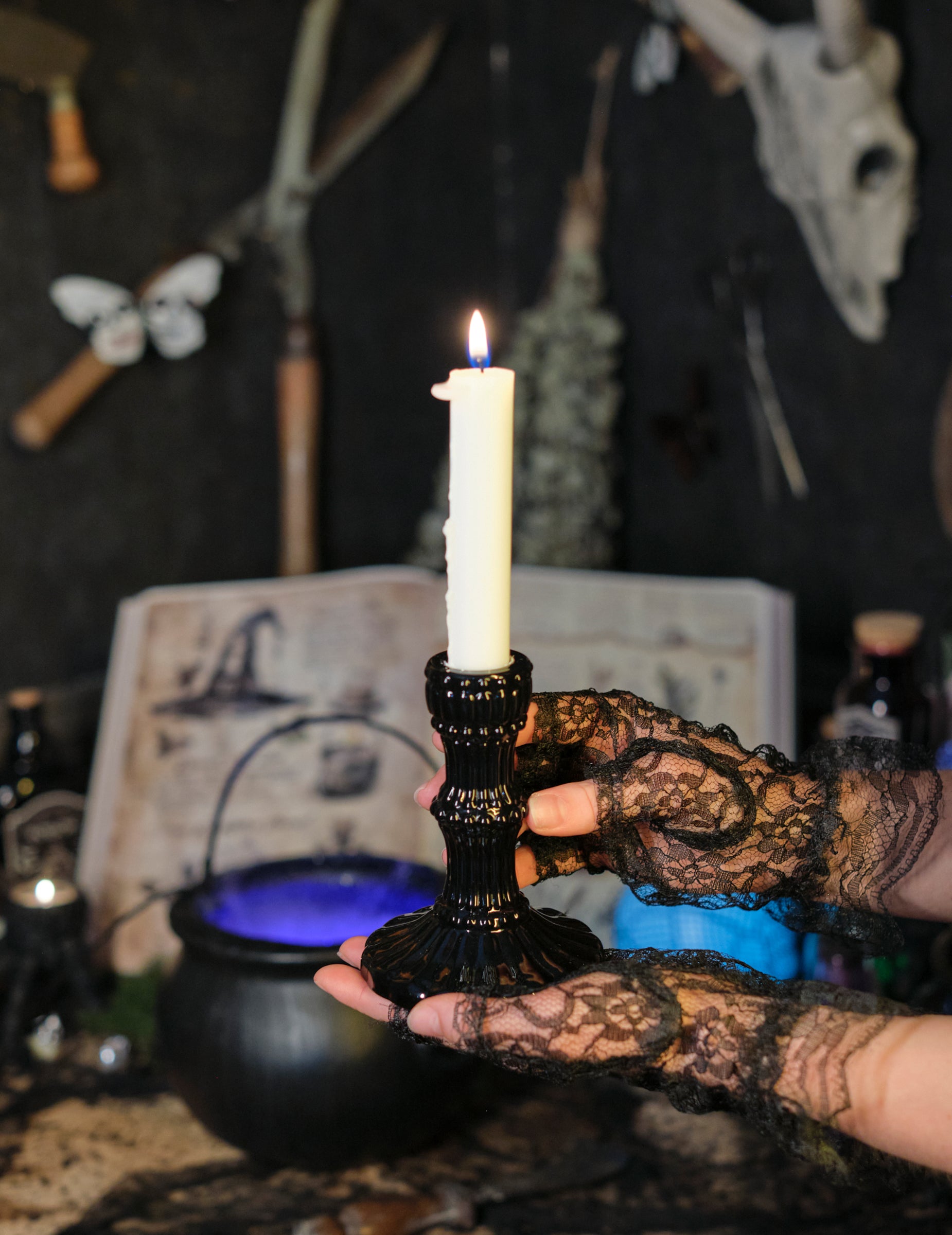 Tento držiak sviečok s čiernym sklom meria 12 cm A ľahko sa prispôsobí sviečke pochodne. Jeho komplikovaný tvar, zvýraznený hlbokým tónovaným sklom, z neho robí dekoratívny objekt s postavou, ktorý je ideálny pre vaše Halloweenské displeje. Nainštalovaný na stole, polica alebo kus nábytku, rozptyľuje tmavú a rafinovanú atmosféru.