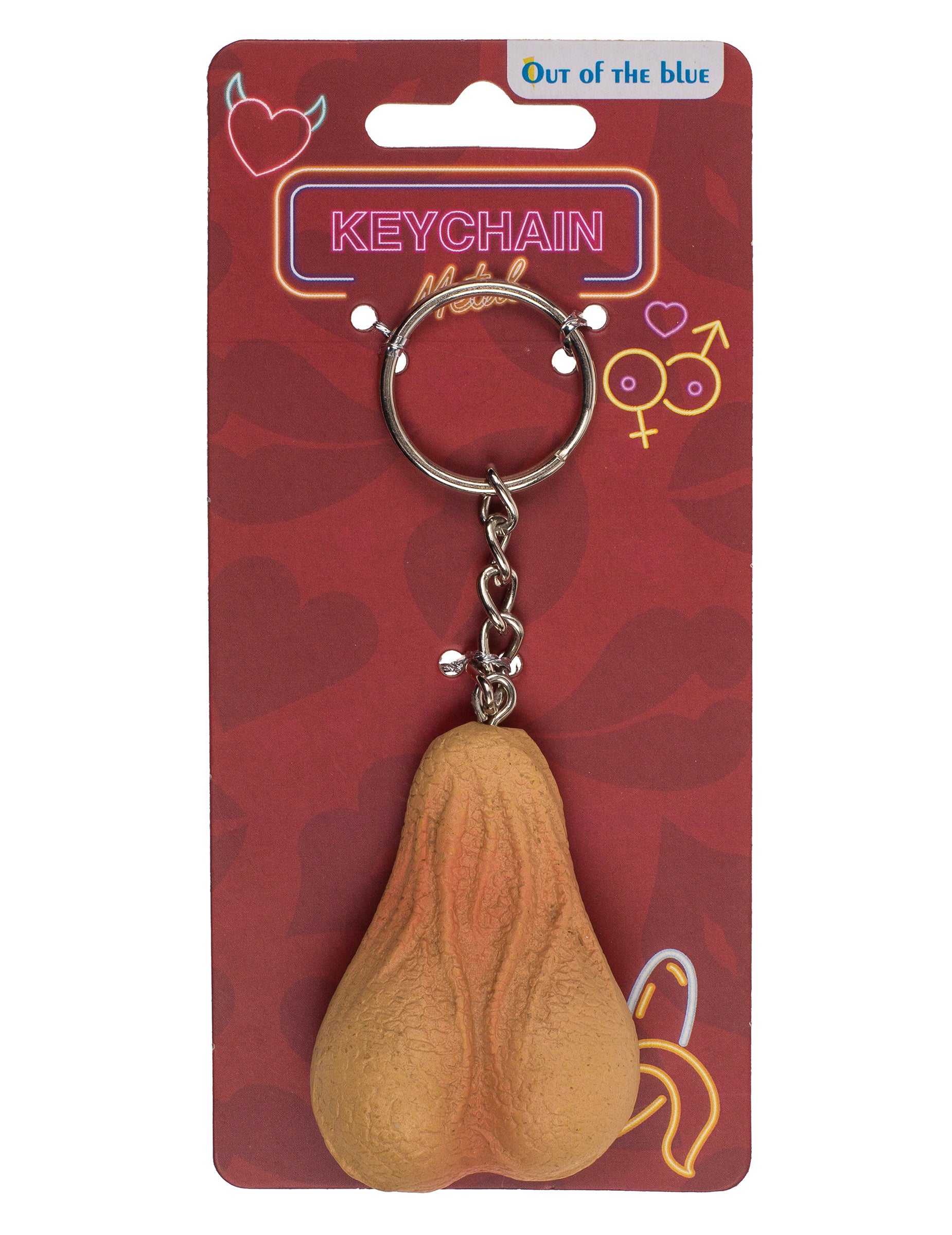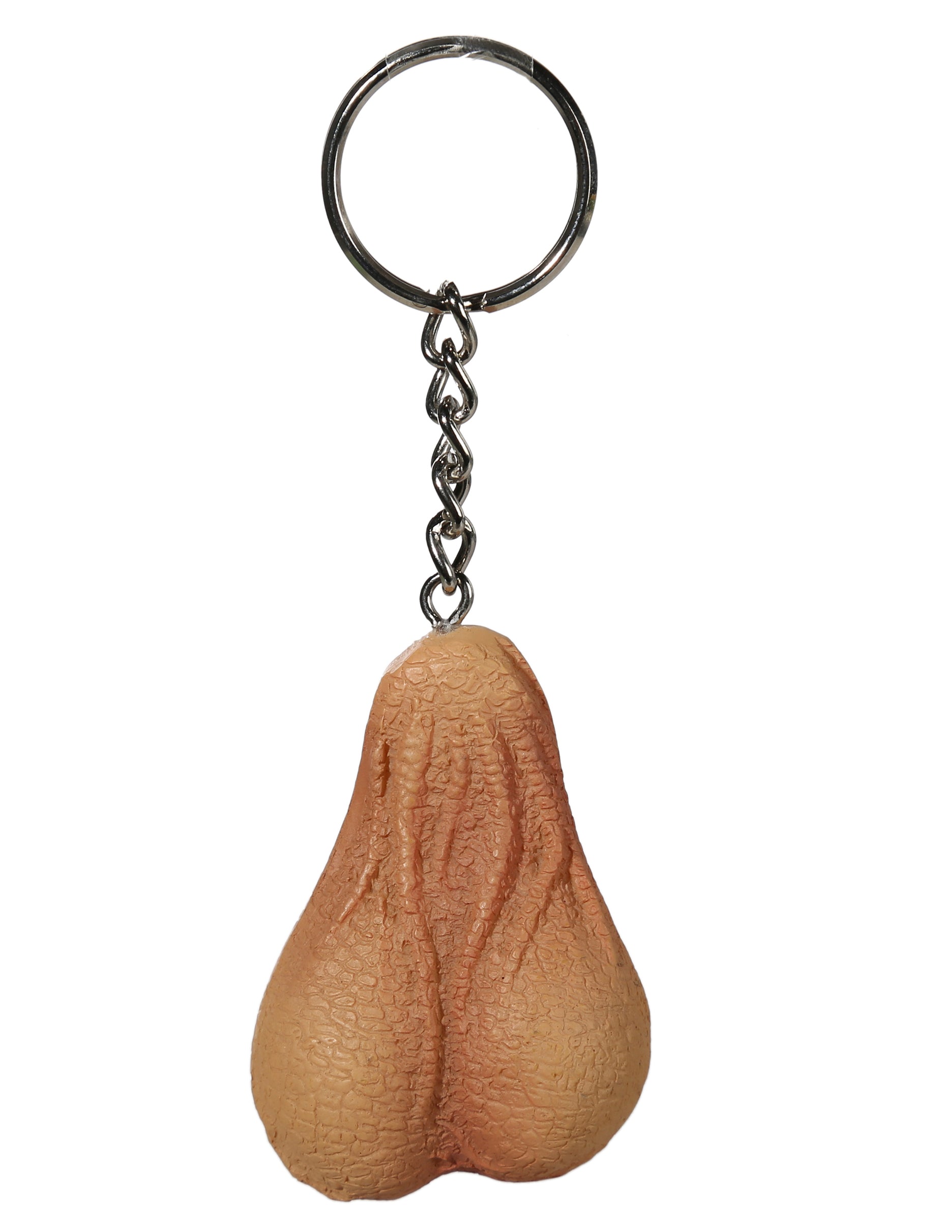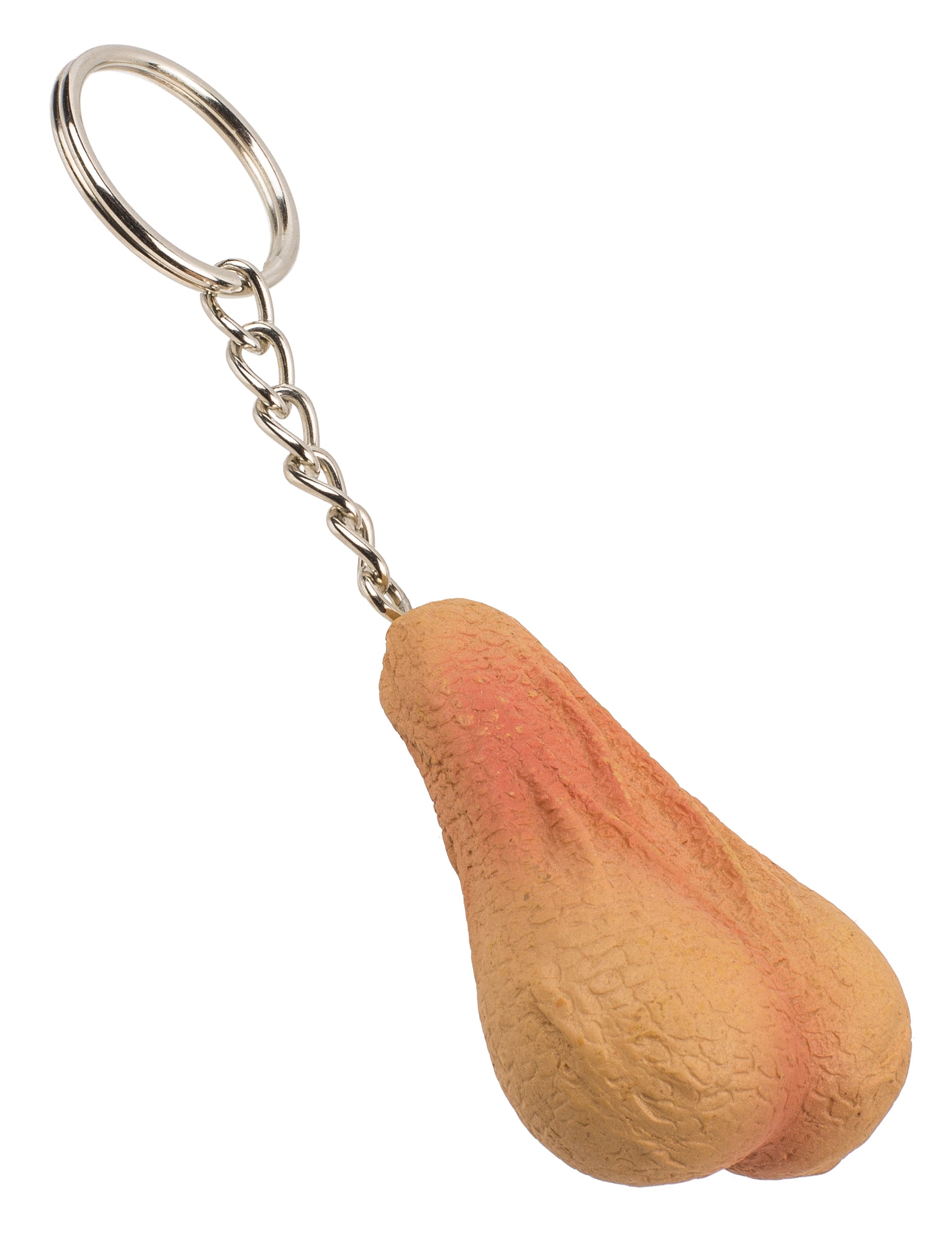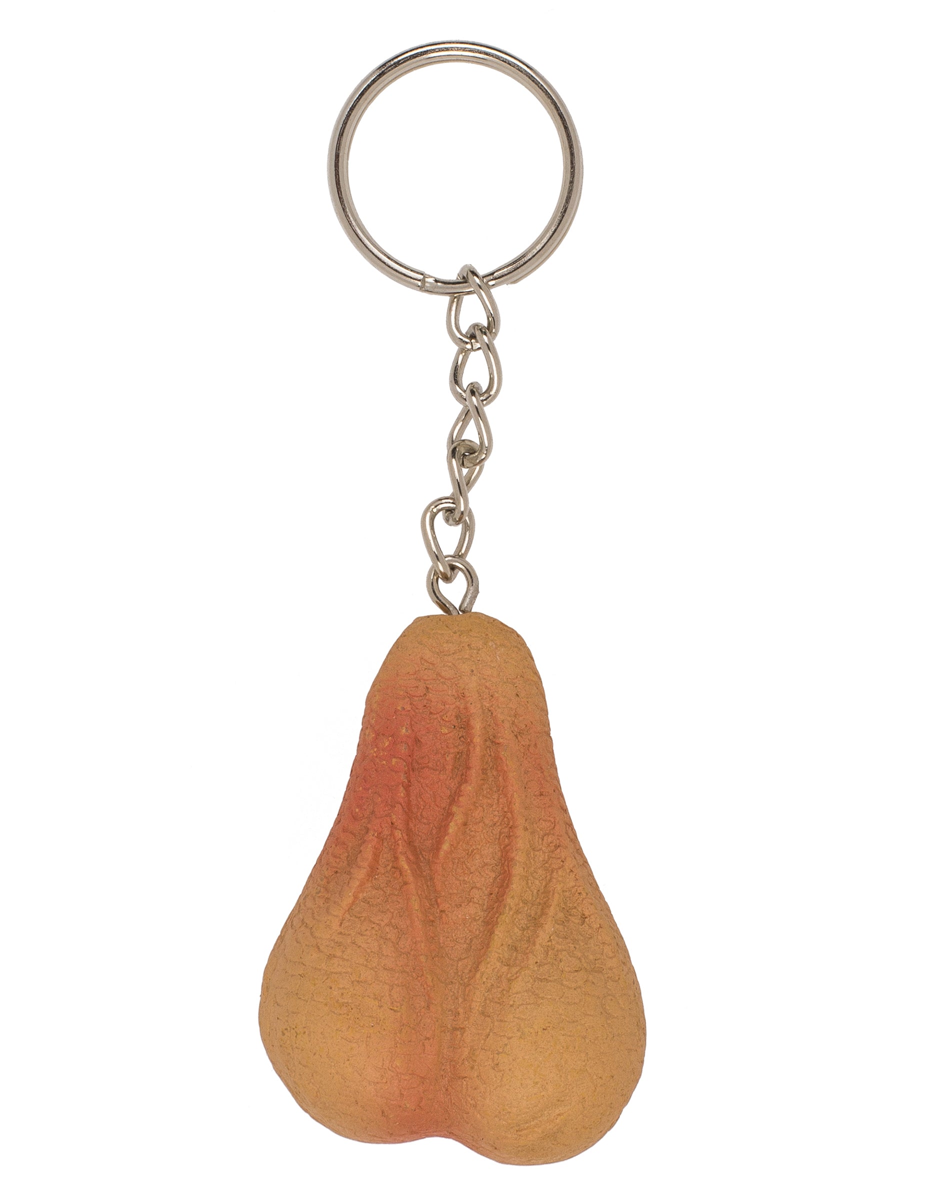 Skladá sa z kovového krúžku pripevneného na malej retiazke s príveskom v tvare semenníka telovej farby. Povrch má textúrovaný vzhľad, ktorý umocňuje realistický efekt dizajnu. Jeho kompaktná veľkosť umožňuje jednoduché pripevnenie na kľúče, zips alebo tašku.