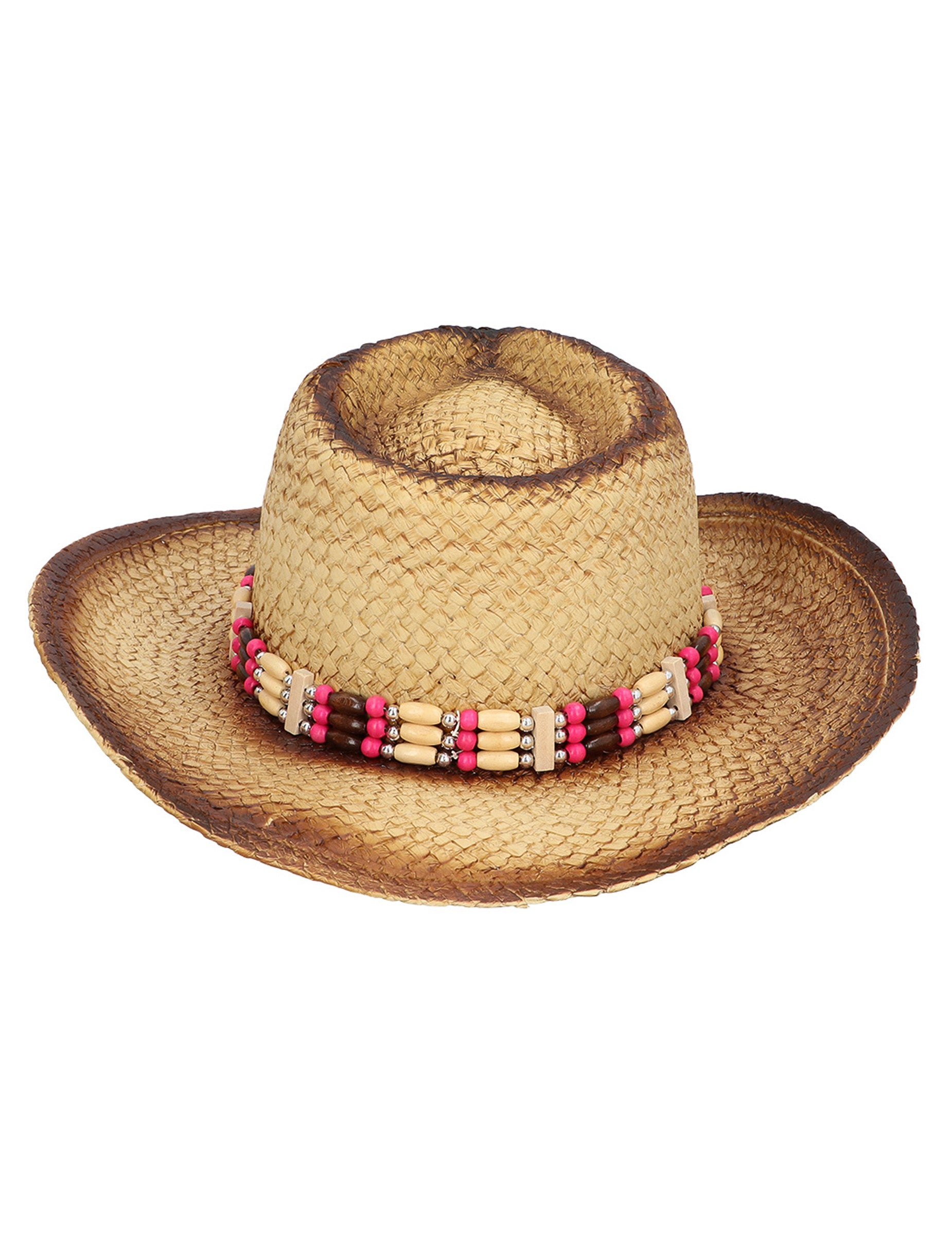 Chapeau Cowboy en paille avec perles adulte