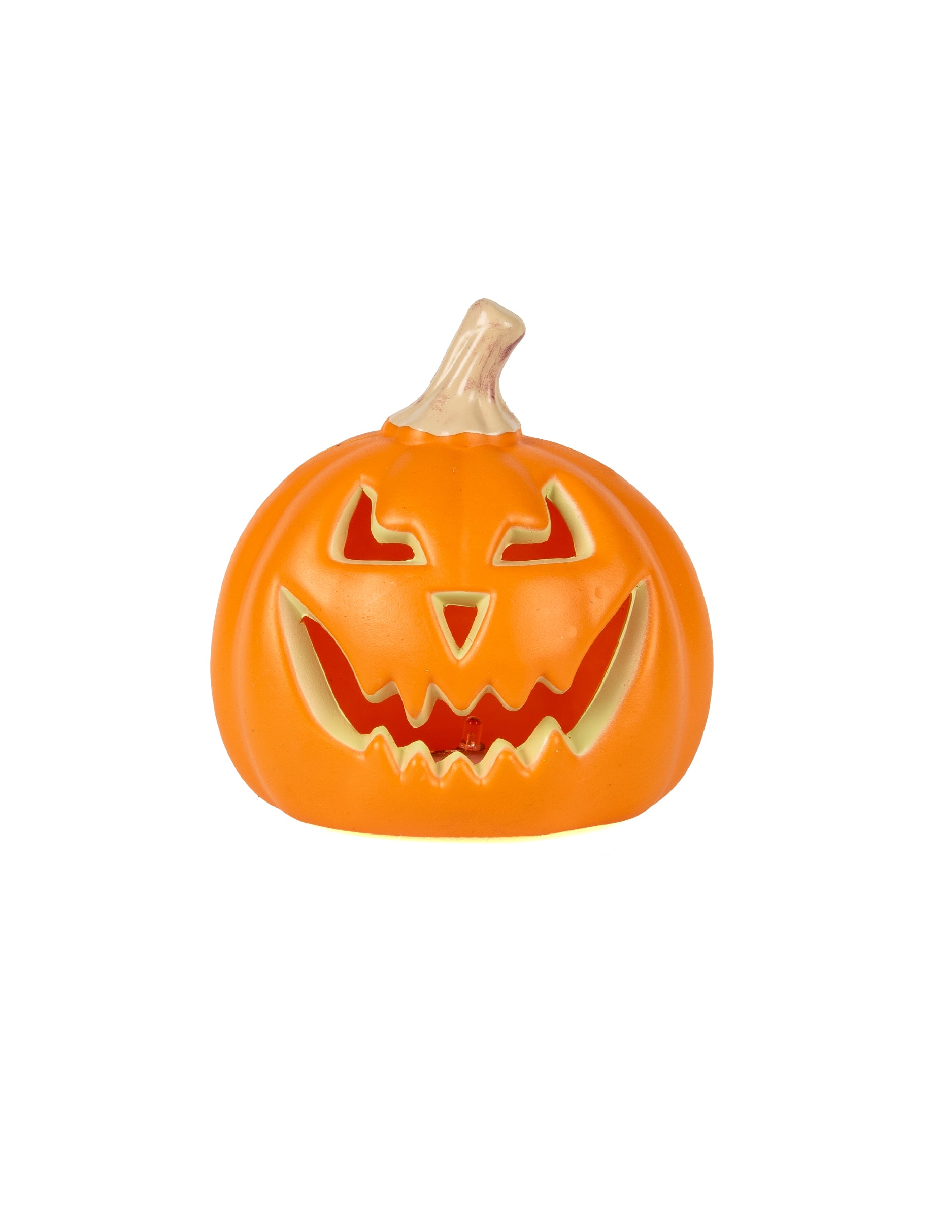 Dodajte svojej dekorácii nádych tajomstva s touto žiarivou oranžovou tekvicou (13 cm). cm. Napájané 3 batériami LR44, ktoré sú súčasťou balenia, vyžaruje tajomnú žiaru, ktorá umocňuje halloweensku atmosféru. Je ideálne na párty a bezproblémovo zapadne do interiérových dekorácií aj do chránených vonkajších priestorov.