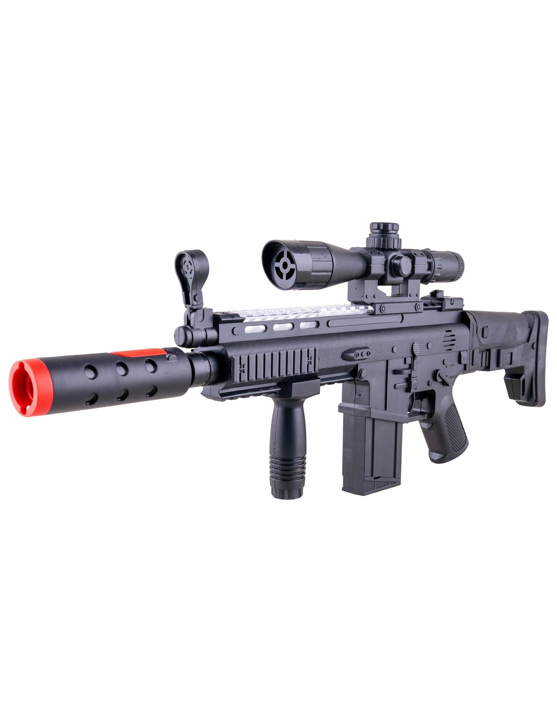 Cette mitrailleuse factice combine effets lumineux, sonores et fumée pour plonger les enfants dans une ambiance de combat réaliste. Facile à utiliser, elle fonctionne avec 3 piles AA (non incluses) et promet des heures de jeu immersif. Parfaite pour les jeux de rôle, déguisements militaires ou fêtes costumées, elle complète idéalement un costume de soldat.