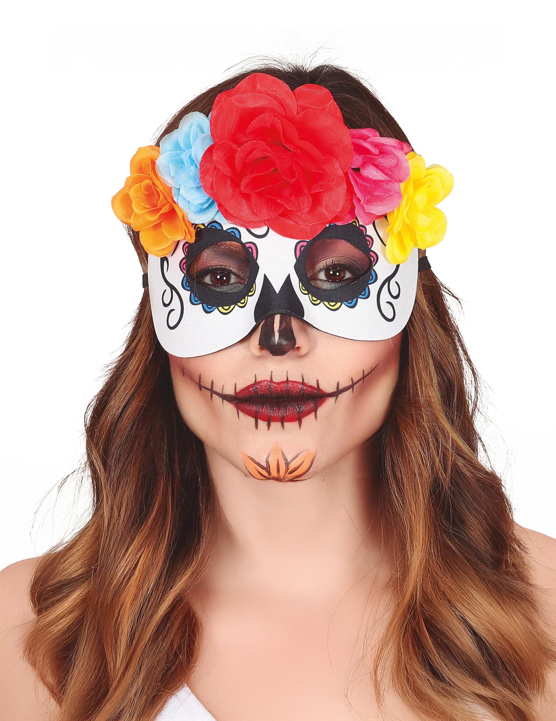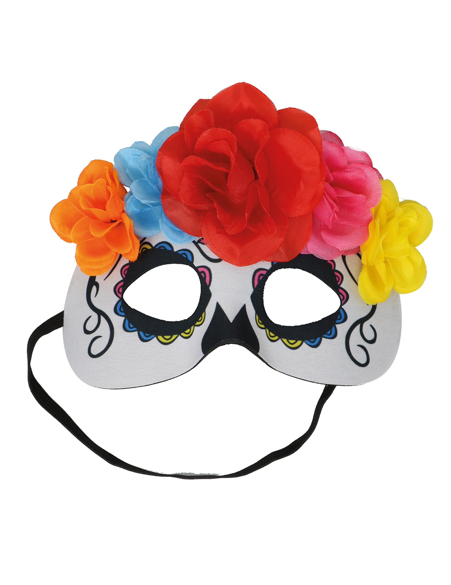 Ponorte sa do sveta Dia de los Muertos s týmto karnevalovým maskou zdobenou farebnými kvetmi. Navrhnutý špeciálne pre dospelých, spája motív mexickej lebky a nádherné červené, žlté a modré kvety pre žiarivý efekt. Ľahký a pohodlný, jednoducho sa upevňuje a skvele doplní váš párty kostým.