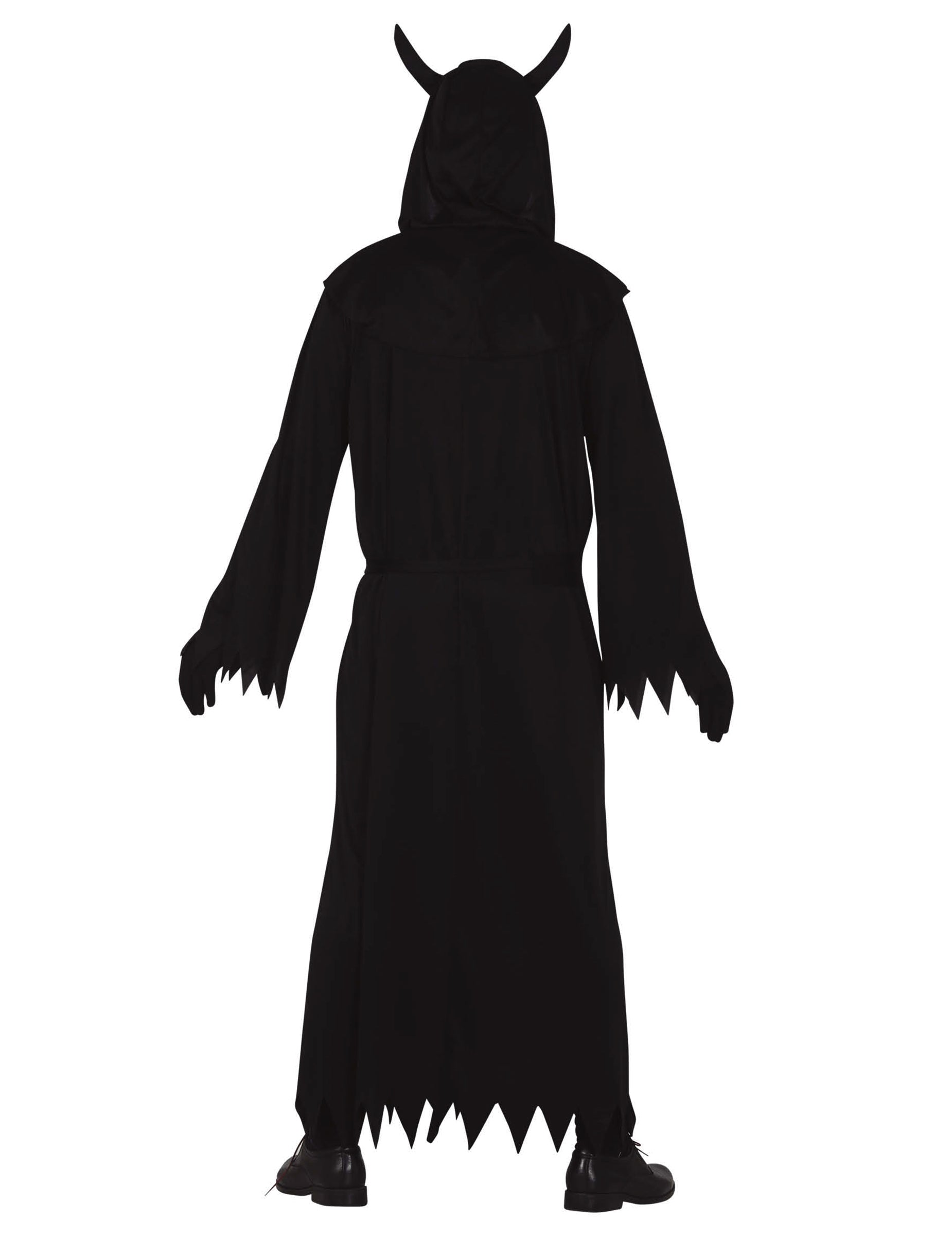 Tento satanistický démonický kostým pre dospelých sa skladá z tuniky, kapucne s rohmi, masky a opasku. Dlhá tunika je čierna s okultnými magickými vzormi na stredovom páse.