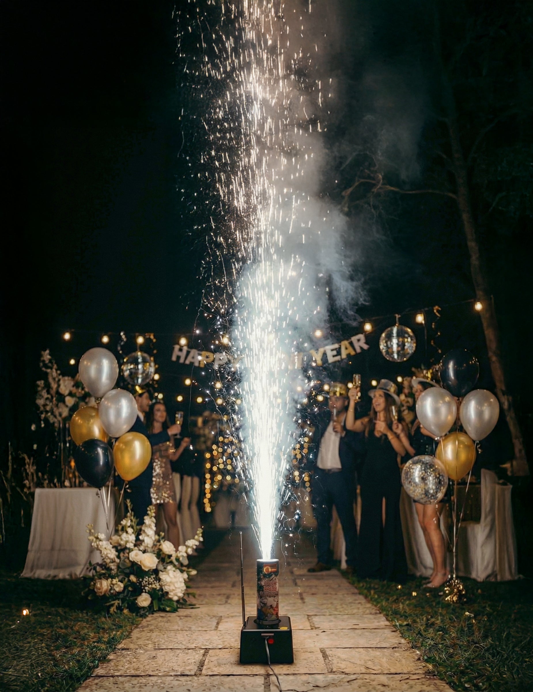 Tento fontánový efekt je ideálny pre príležitosti ako predstavenie, silvestrovská oslava, narodeniny alebo slávnostný ceremoniál organizovaný v exteriéri.