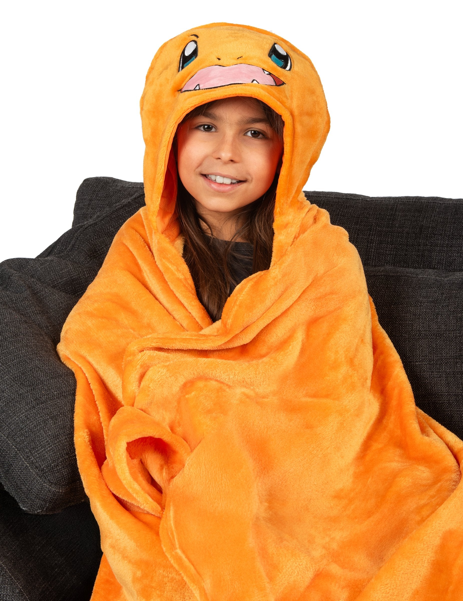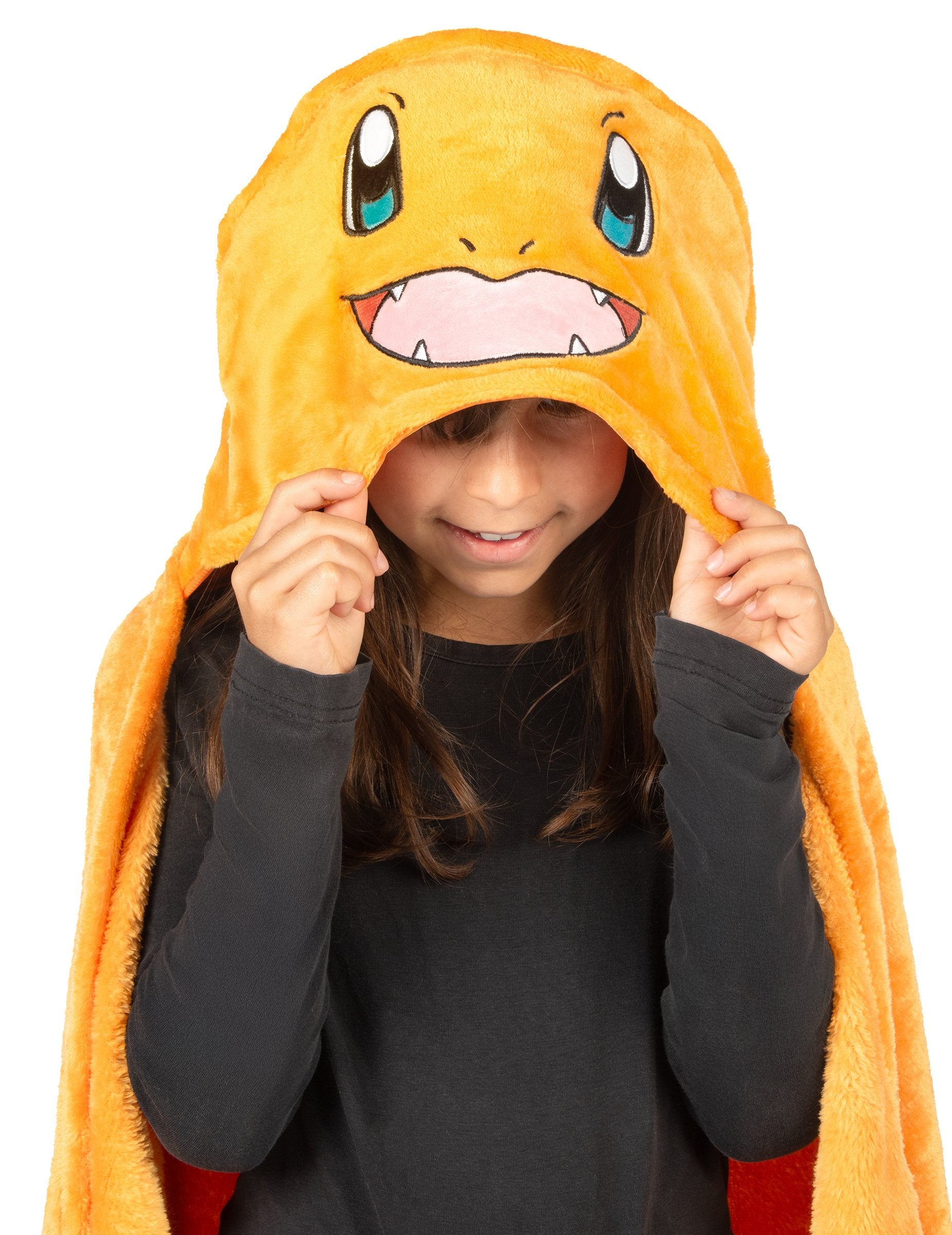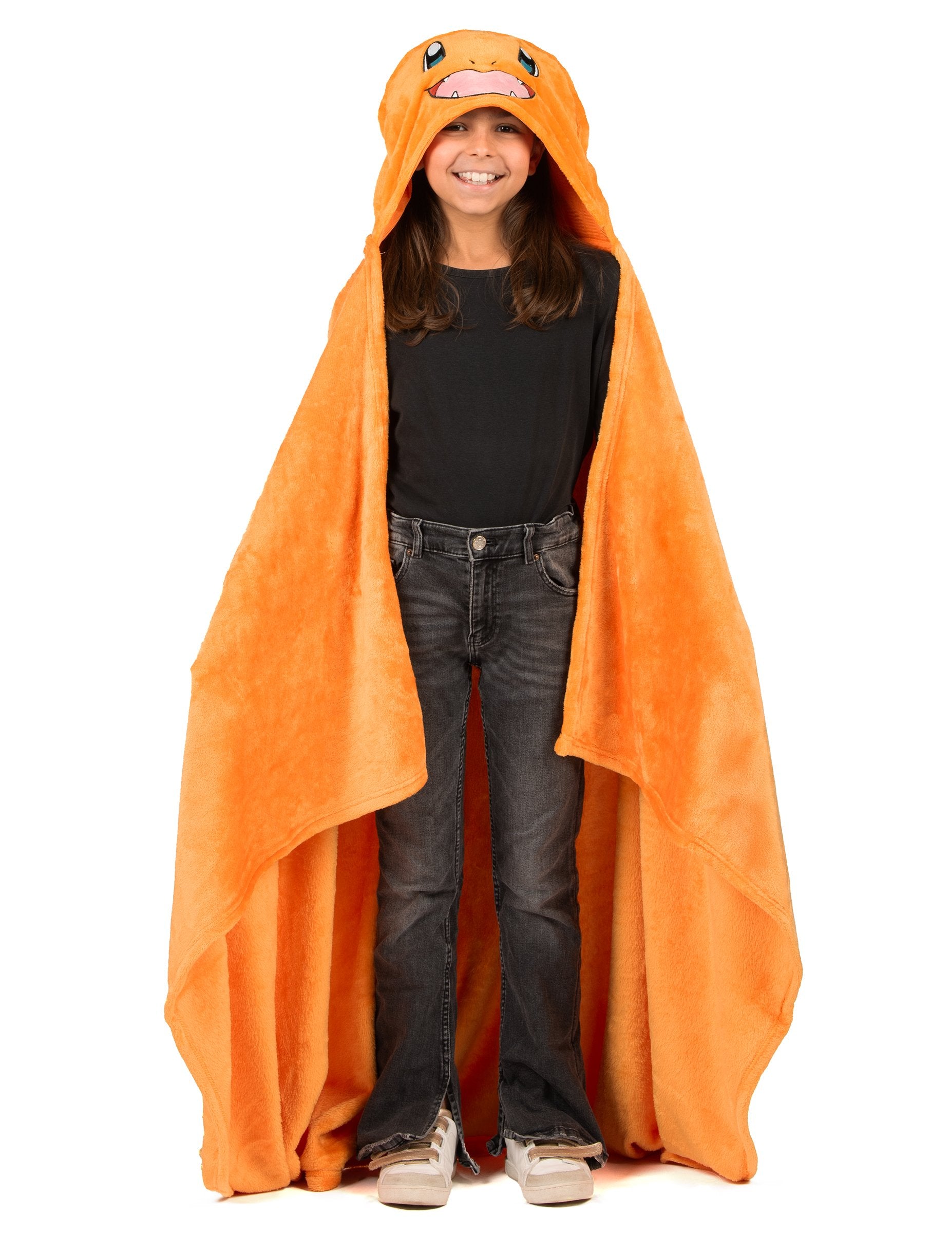 Tento kostým Salamander plyšová prikrývka s kapucňou Pokémon™ je dokonalým spoločníkom pre deti, ktoré sa chcú zahriať a zároveň sa zabaviť. Jeho oranžová kapucňa zobrazuje veselú tvár Salamandra, zatiaľ čo na chrbte je štýlizovaný plameň, ktorý pripomína slávny chvost malého ohnivého Pokémona.