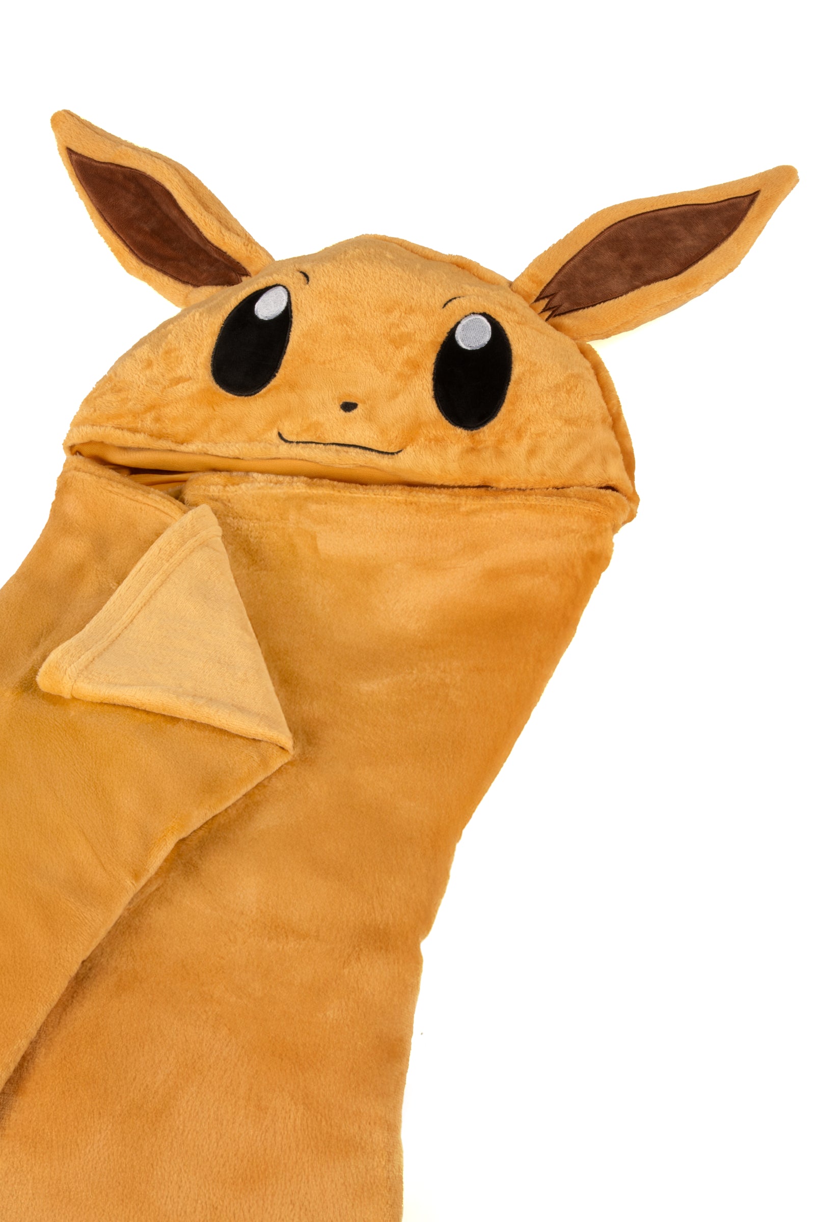 Toto Flísová deka s kapucňou pre kostým Pokémon™ Eevee Zahalí deti do oblaku tepla a mäkkosti. Kapucňu zdobia veľké uši a rozkošné očká. z EeveeTáto deka sa stane skutočným spoločníkom na pokojné chvíle alebo hry doma.