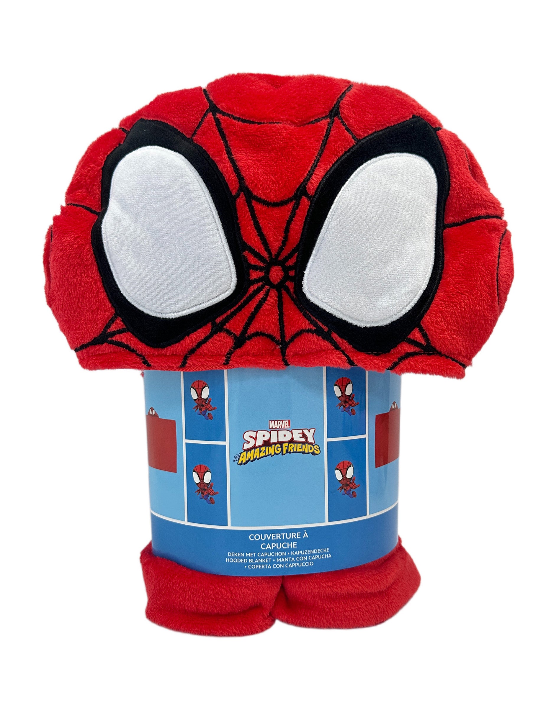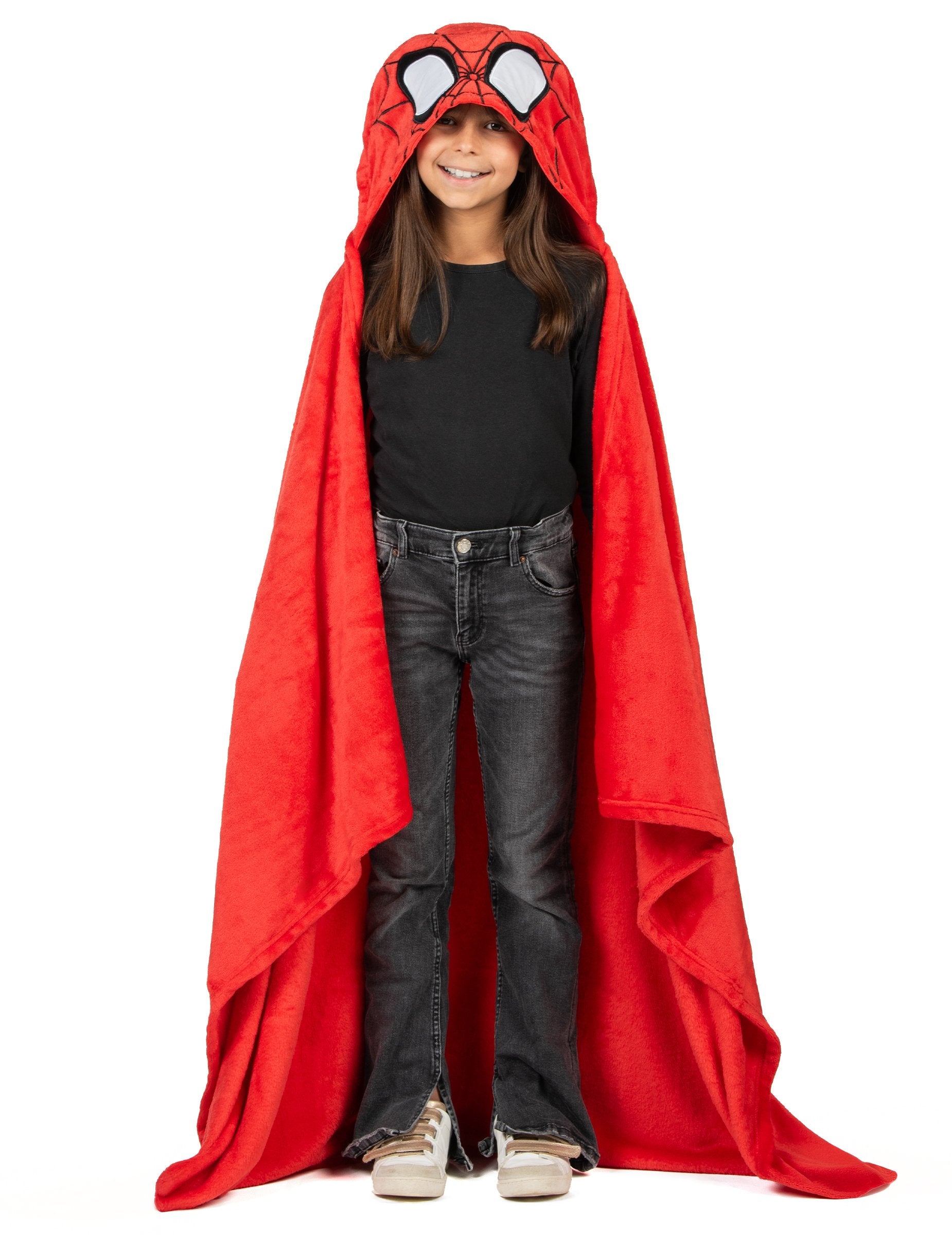 Tento kostým Spidey a jeho priatelia™ v podobe polarovej deky s kapucňou premení každý oddychový moment na superhrdinské dobrodružstvo! S červenou kapucňou zdobenou ikonickými očami Spideyho zabalí dieťa do mäkkého kokónu, pripraveného čeliť chladu... alebo si predstavovať veľké misie.
