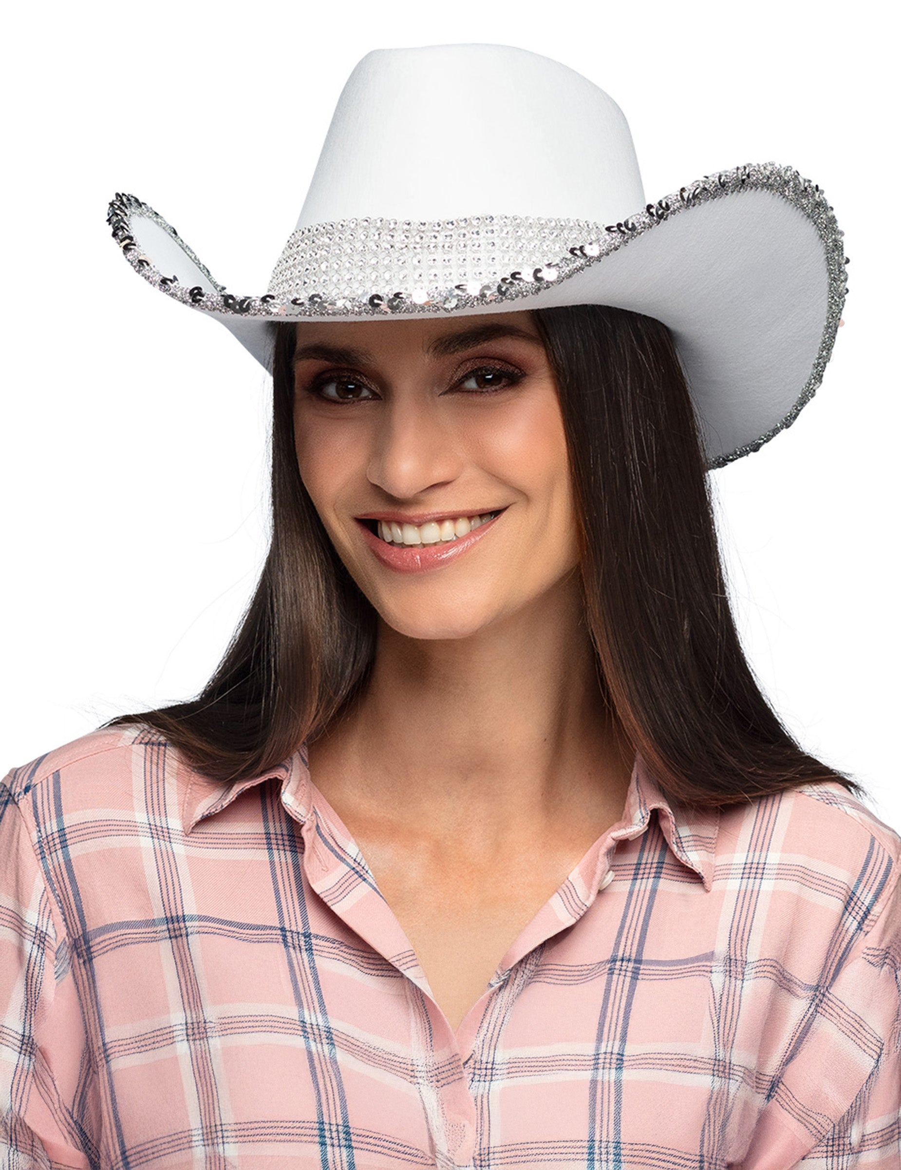 Tento biely kovbojský klobúk pre dospelých je ideálny na očarujúcu rozlúčku so slobodou, trendy festival alebo jedinečnú kostýmovú párty. Jeho žiarivý semišový efekt, trblietavý kamienkový pás a strieborný lem z neho robia elegantný a slávnostný kúsok. Dokonale doplní moderný kovbojský outfit, či už ide o rozlúčku so slobodou, karneval, Silvestra alebo akúkoľvek udalosť s westernovou tematikou.