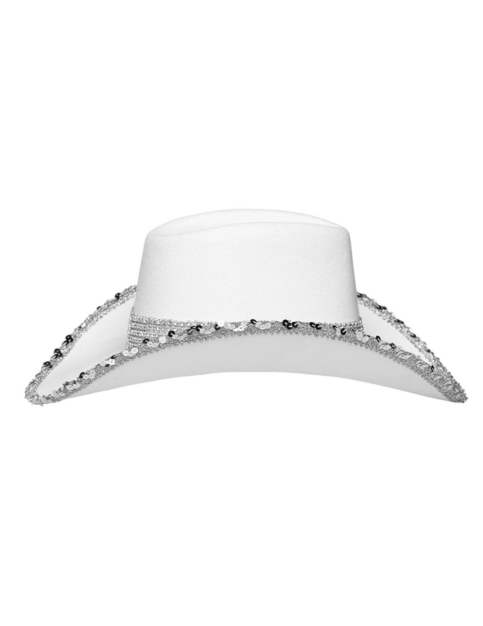 Biely kovbojský klobúk pre dospelých s kamienkami