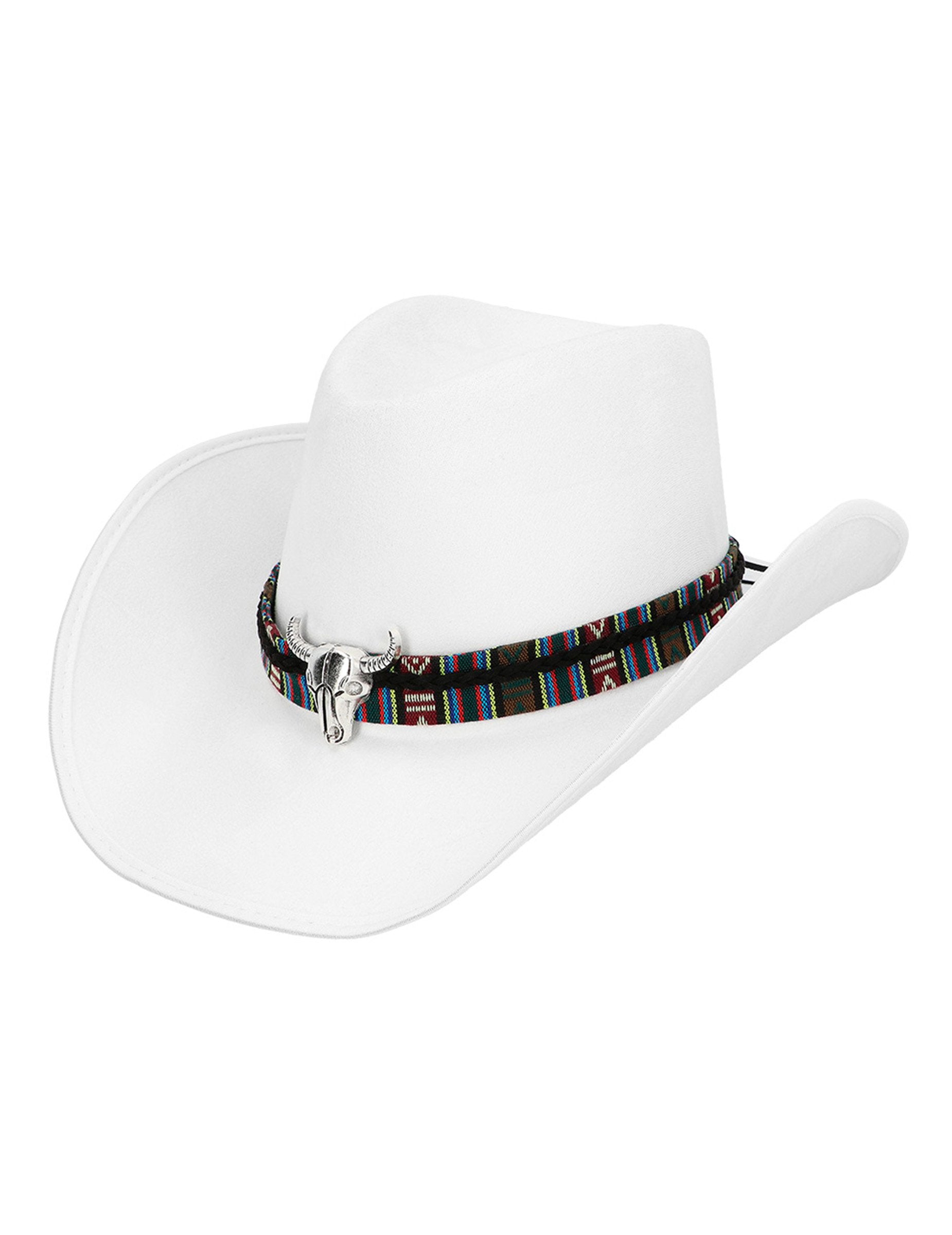Biely kovbojský klobúk pre dospelých s byvolou hlavou