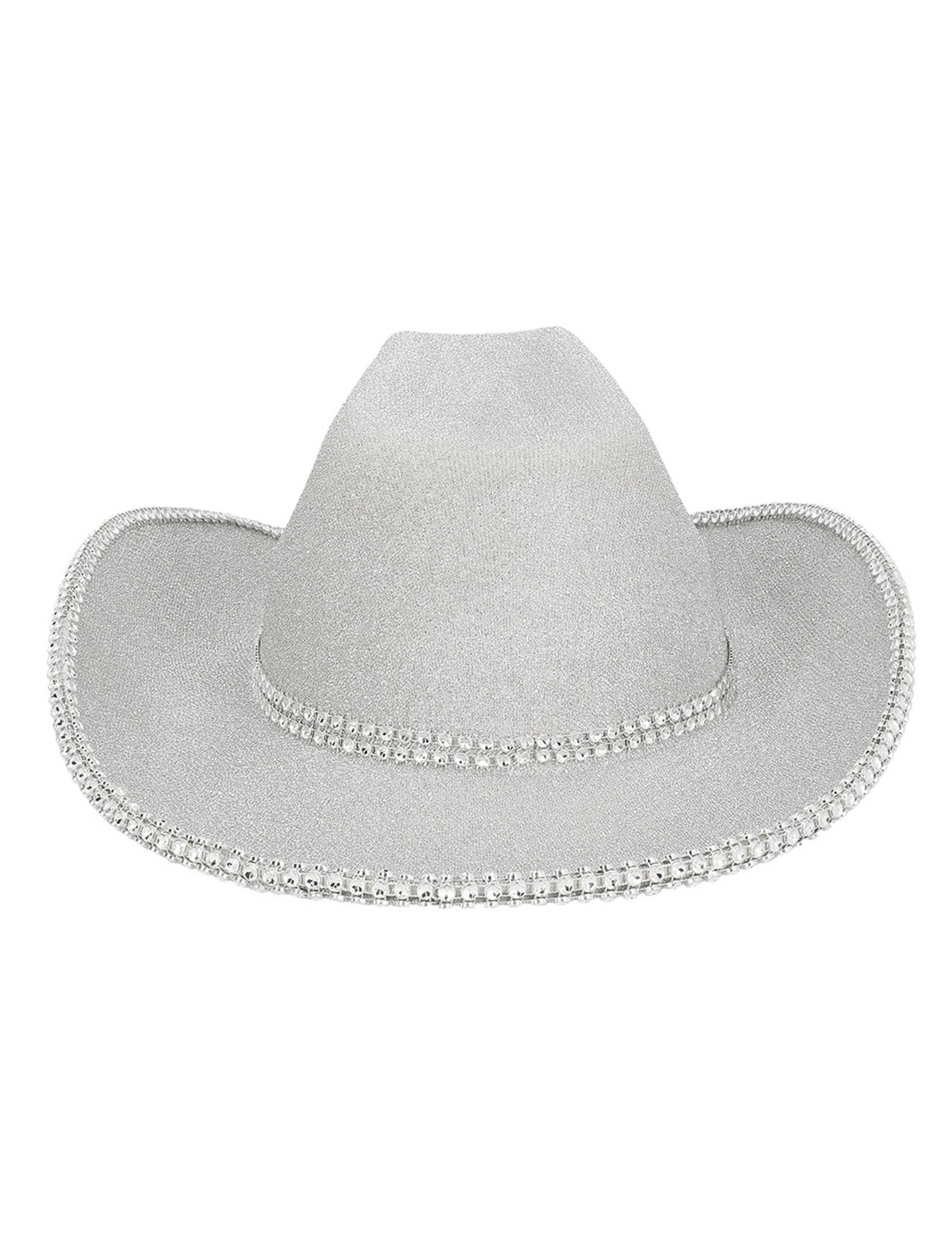 Strieborný flitrovaný kovbojský klobúk pre dospelých