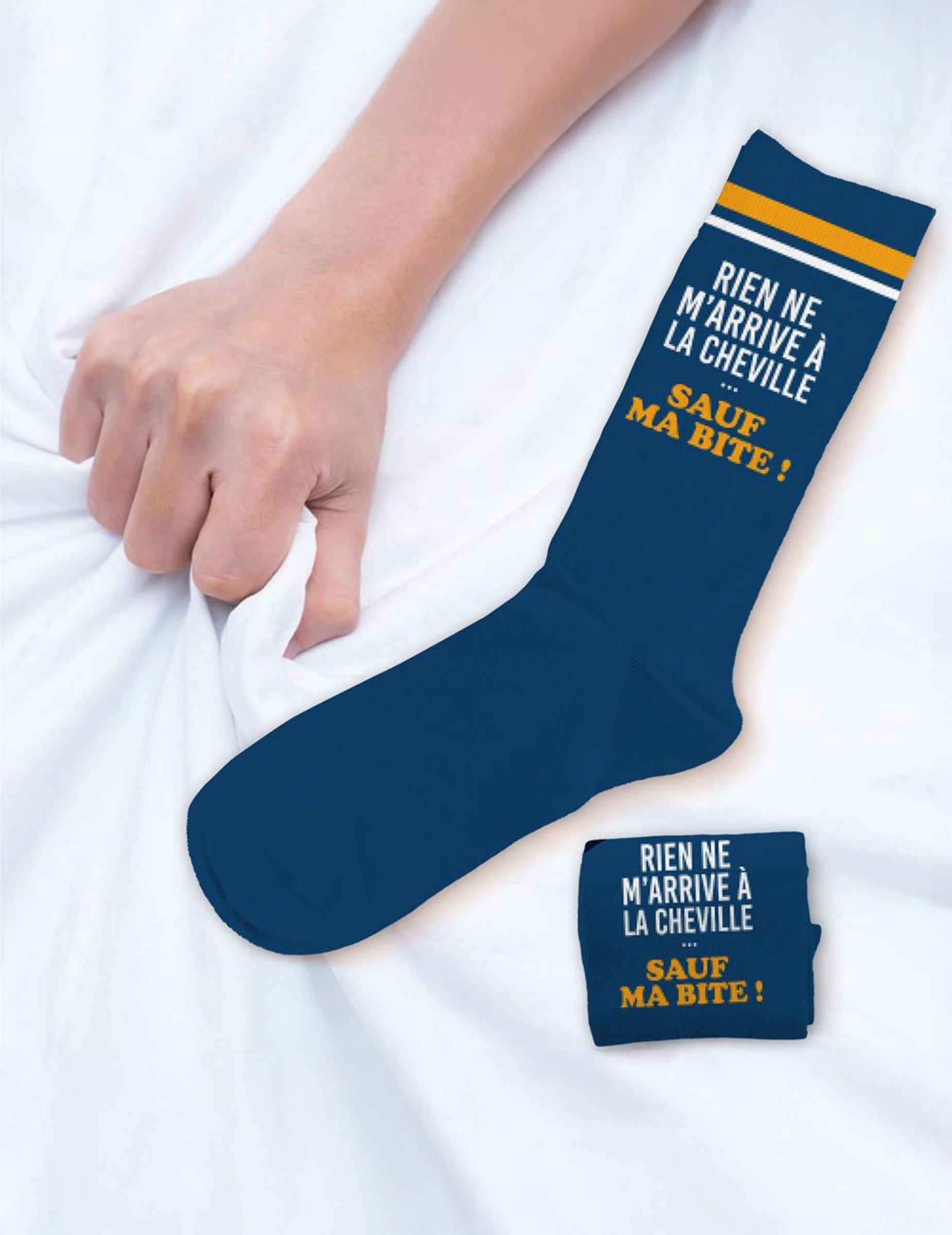 Rozosmite svojich blízkych týmito vtipnými ponožkami vo veľkostiach 39-45! V tmavomodrej farbe majú slogan „Nič mi nevyrovná sviečku... okrem môjho penisu!“, čo je vtipný a originálny dizajn ideálny ako humorný darček. Ich žltobiele pruhy na vrchu dodávajú športový a originálny nádych a jedinečný vzhľad. Zábavný doplnok, ktorý môžete darovať priateľovi, kolegovi alebo milovanej osobe k narodeninám, na vtipnú udalosť alebo jednoducho na dodanie štipky zábavy ich outfitu.